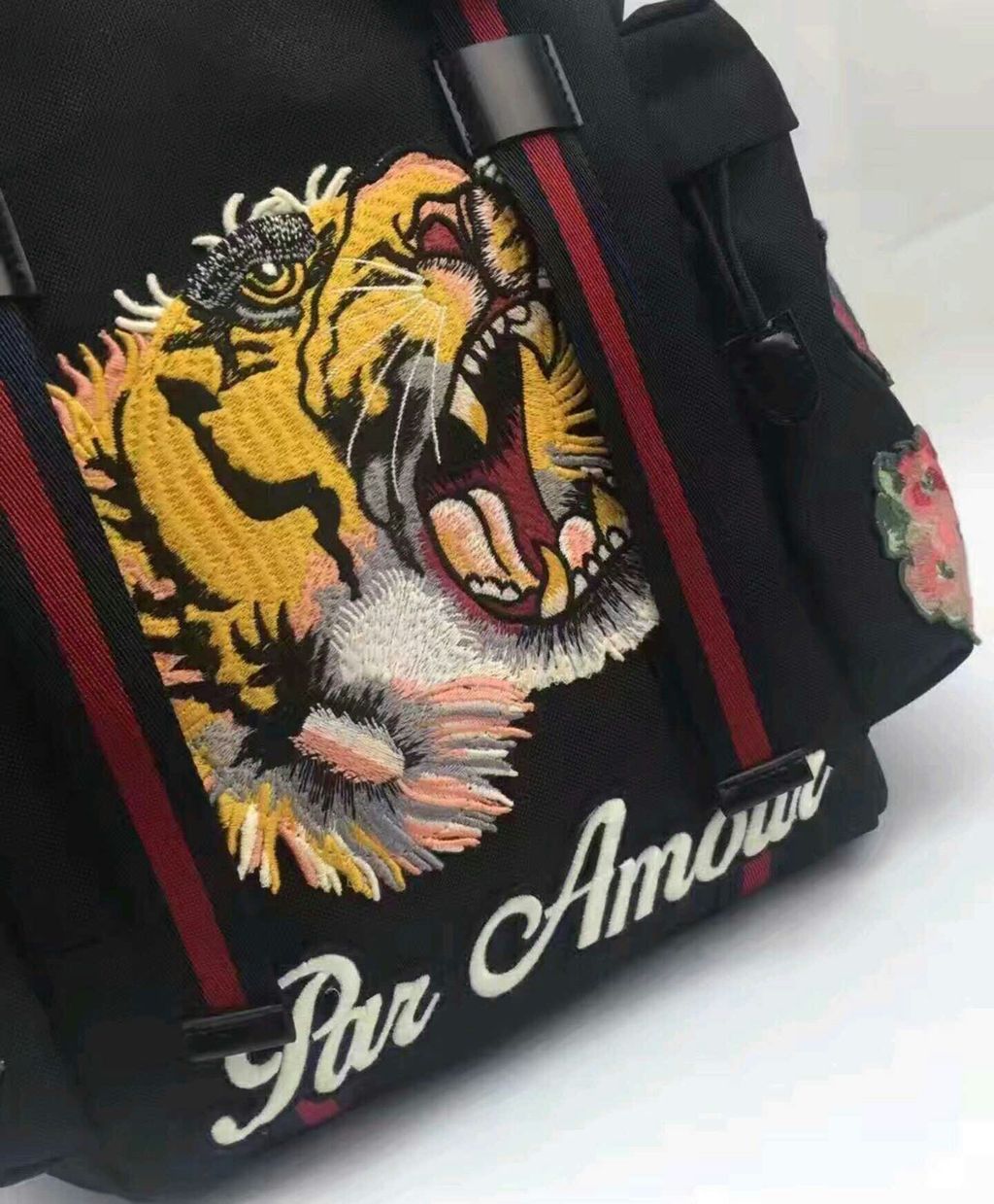 Indie Designs Tiger And Slogan Embroidered Techno Canvas Backpack