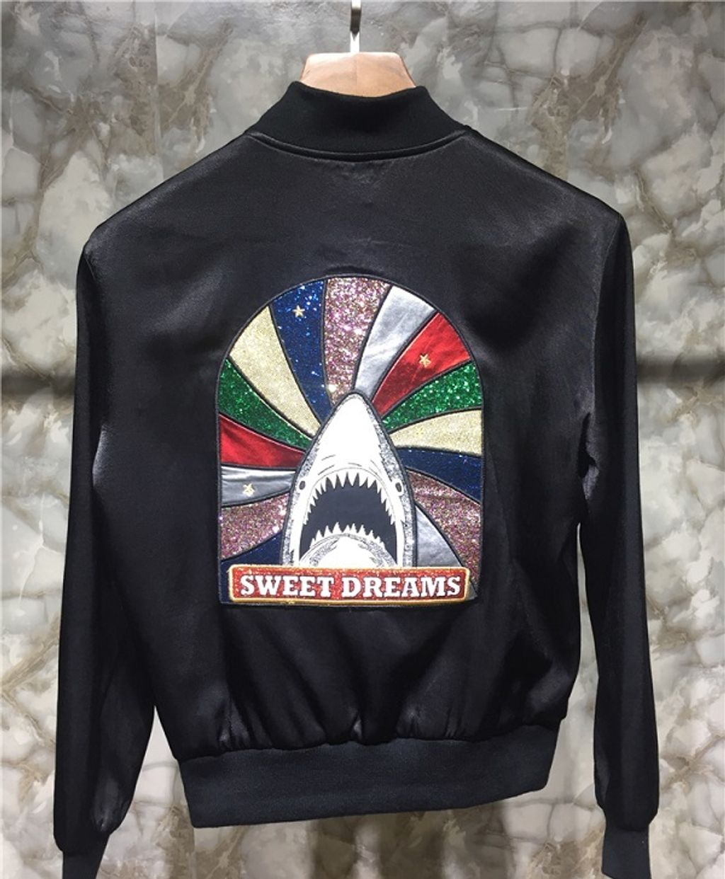Indie Designs 'Sweet Dreams' Shark Patch Satin Bomber Jacket