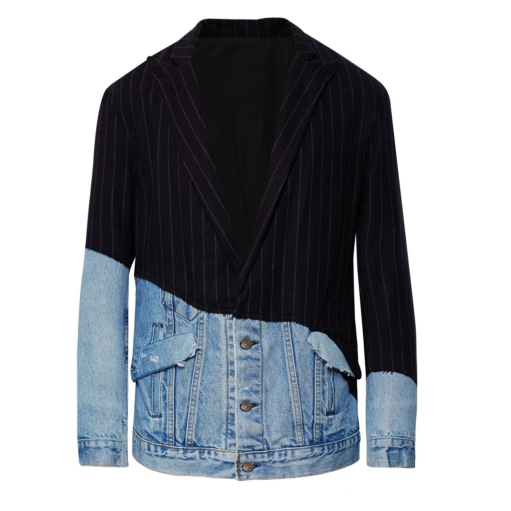 Indie Designs Distressed Denim Wool Striped Blazer Jacket