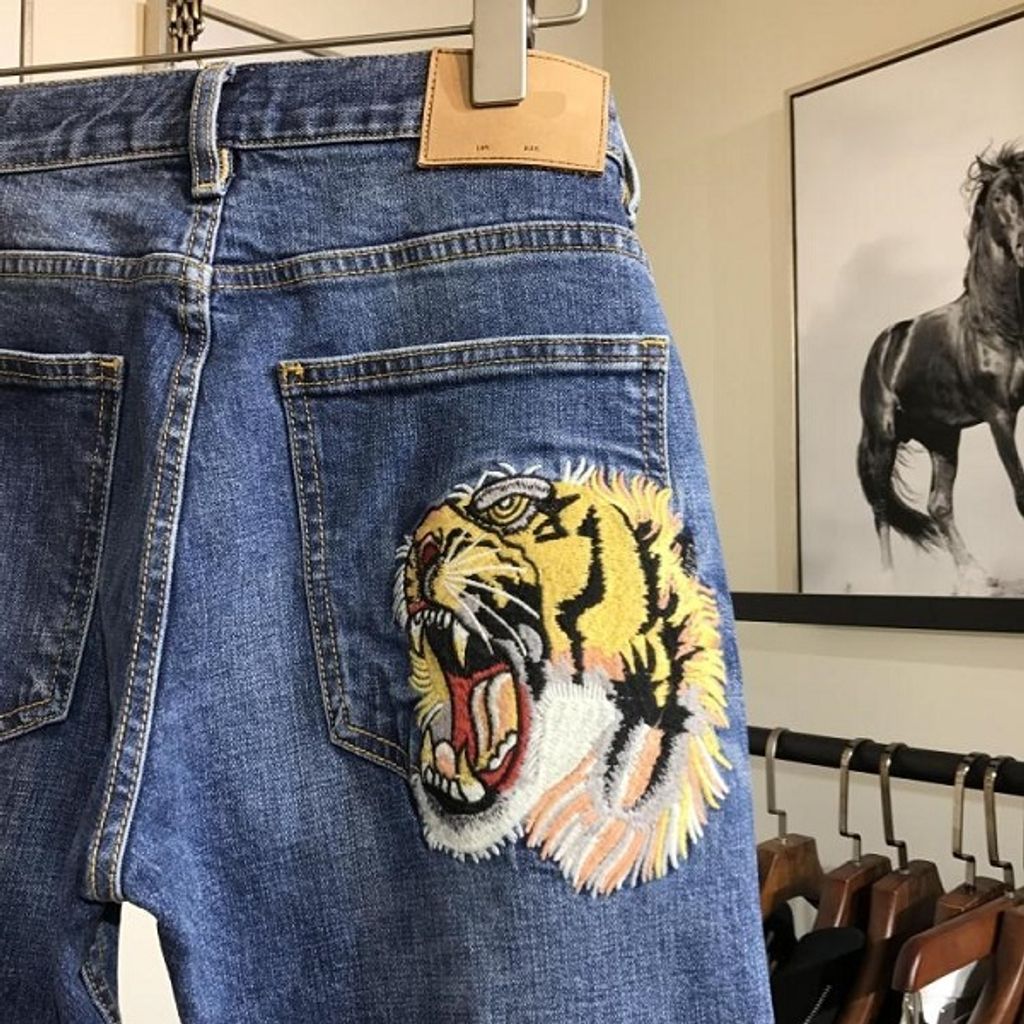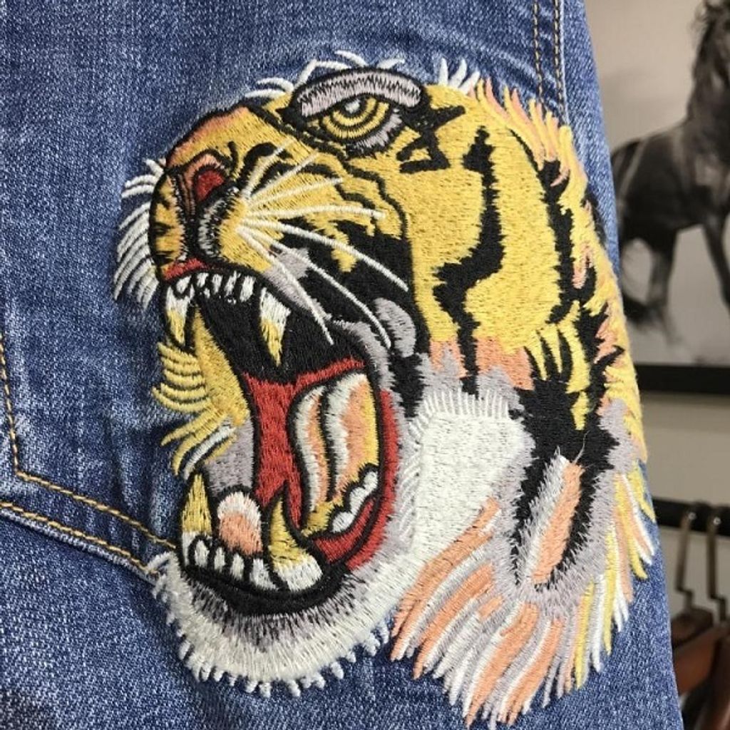 Indie Designs Embroidered Tiger Patch Straight Raw Jeans