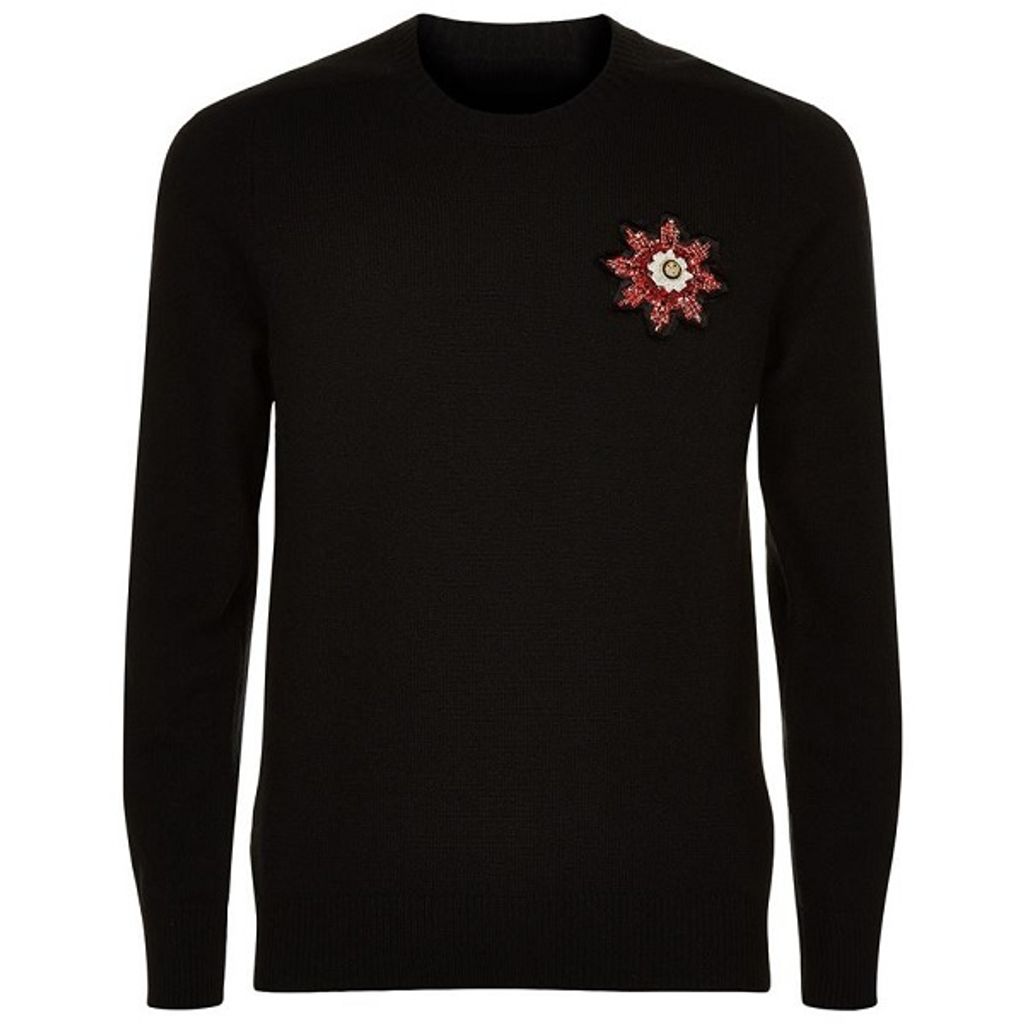 Indie Designs Black Embellished Patch On Cashmere Sweater