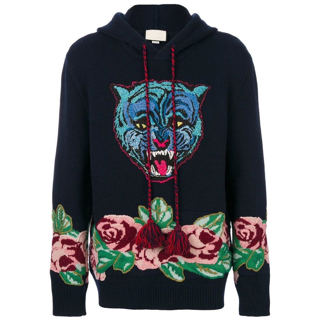 Indie Designs Blue Angry Cat Knitted Hoodie
