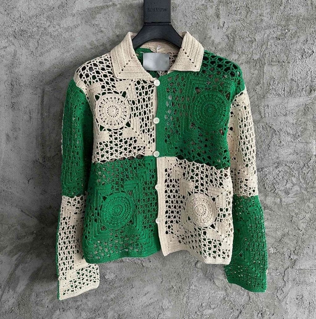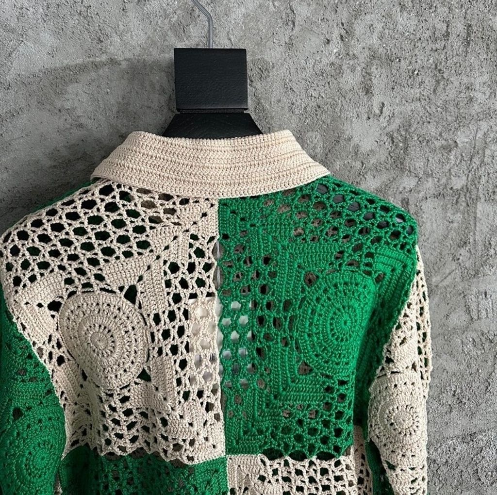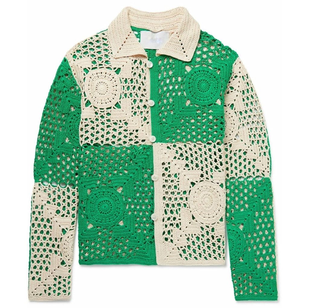 Indie Designs Colour-block Crochet-knit Cotton Shirt