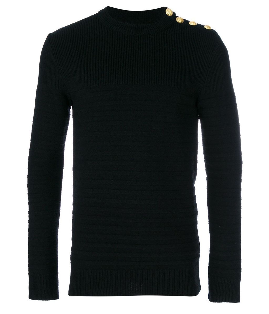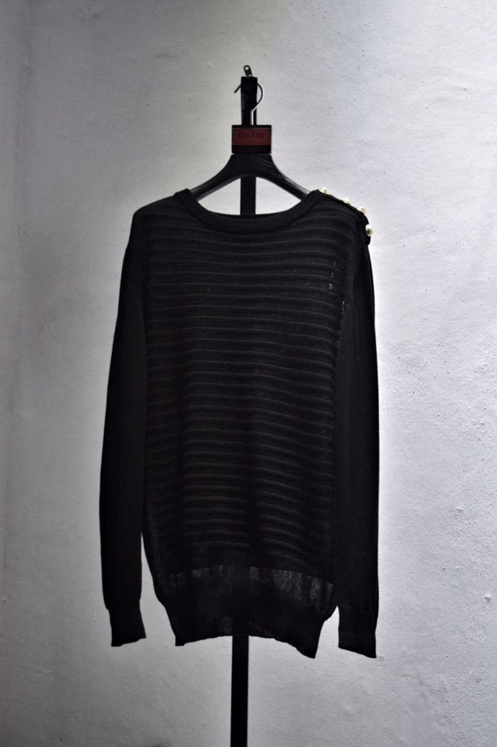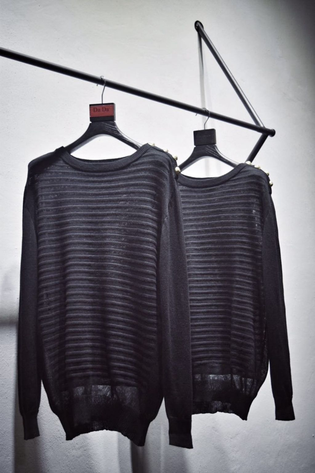 Indie Designs Gold-tone Button Striped Wool Sweater