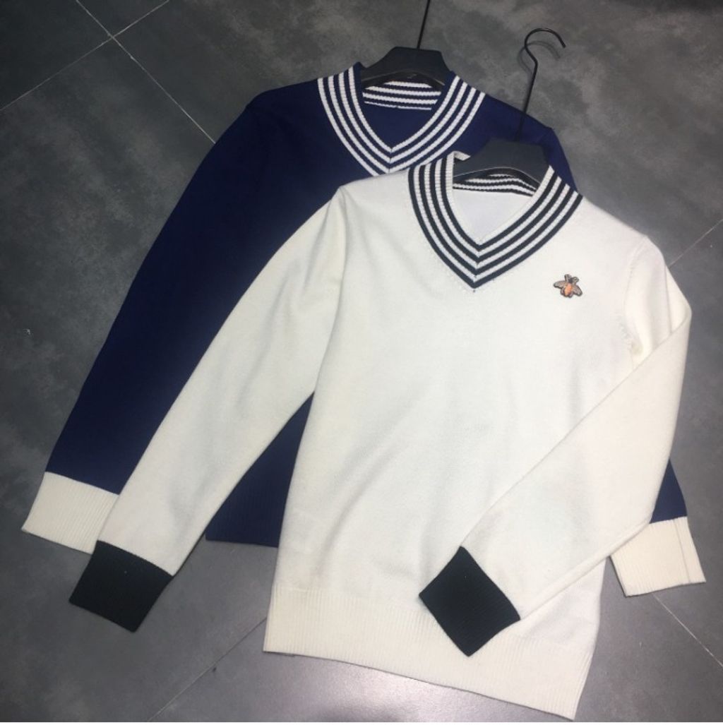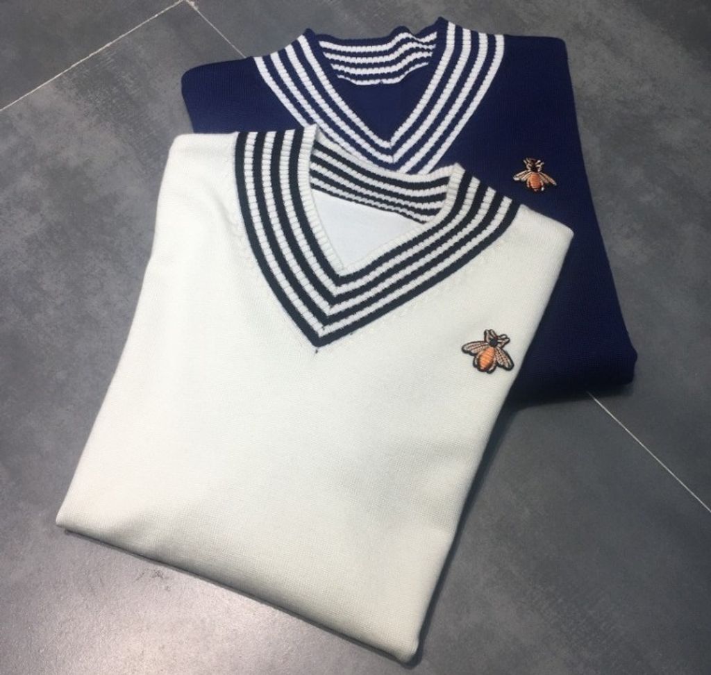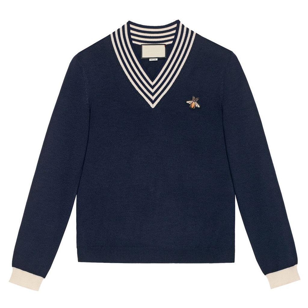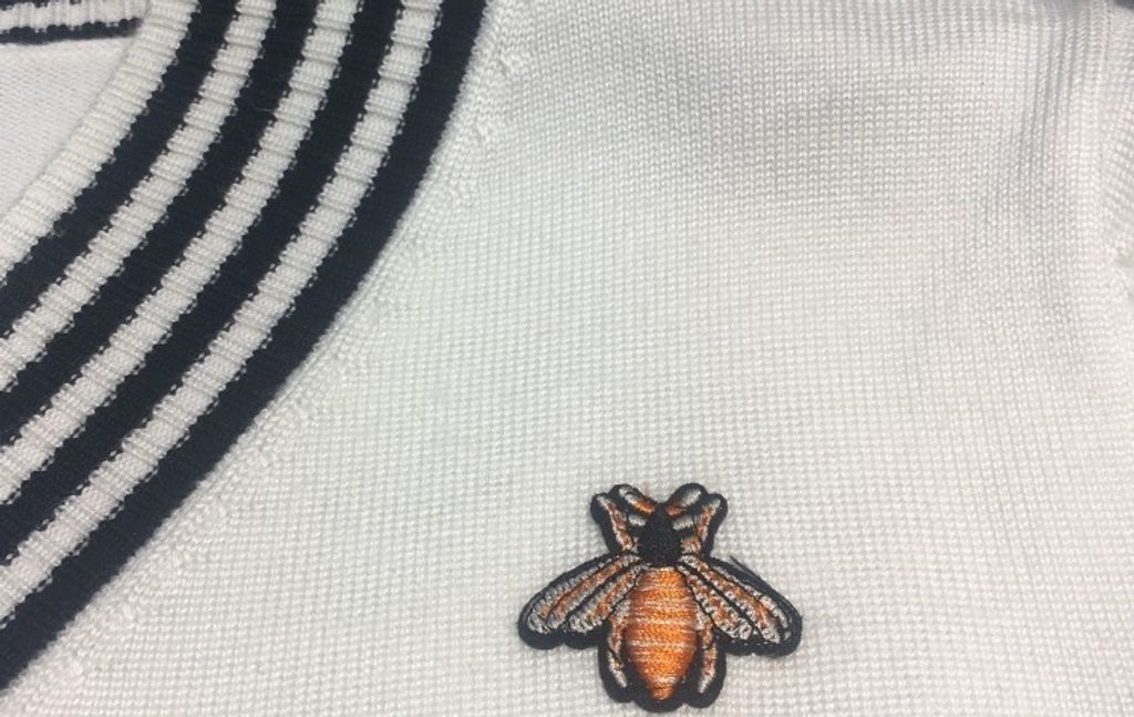 Indie Designs V-neck Bee Embroidered Wool Knit Sweater