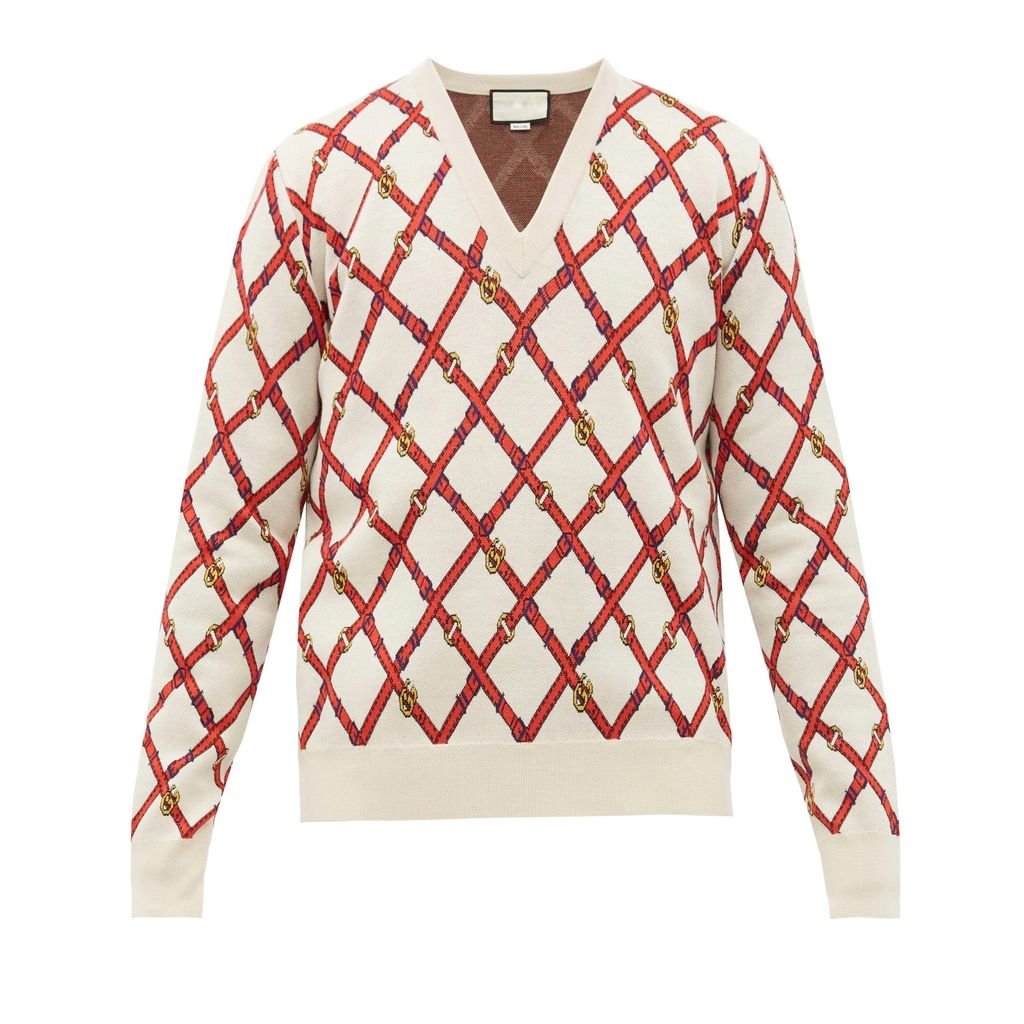 Indie Designs V-neck Harness Instarsia Wool-blend Sweater