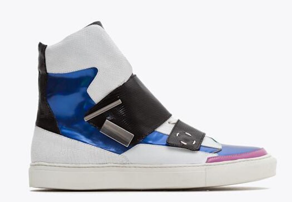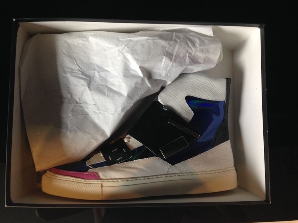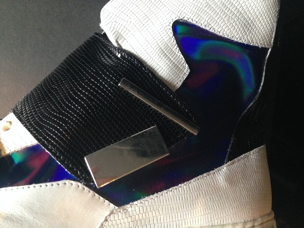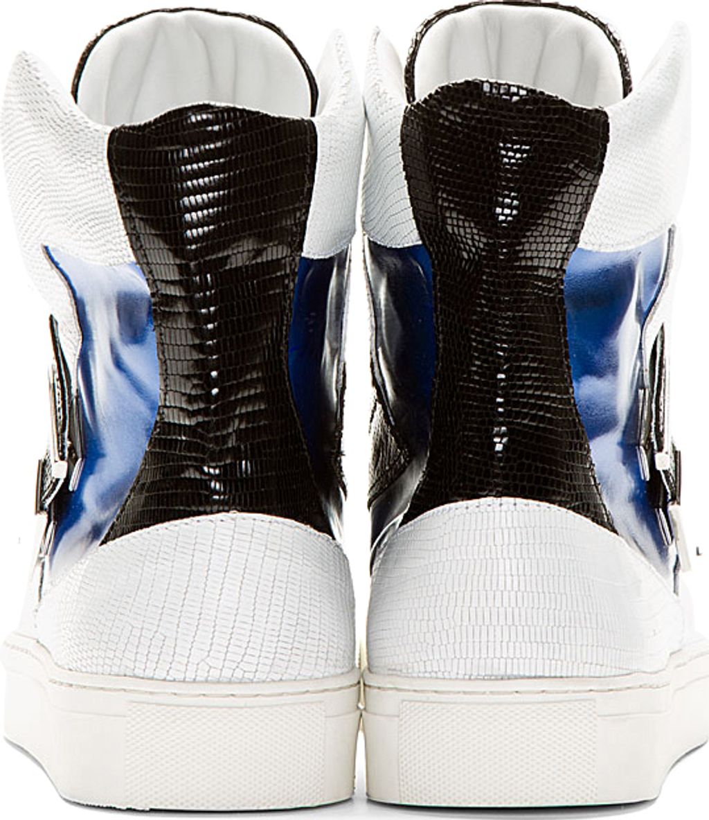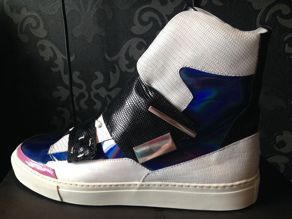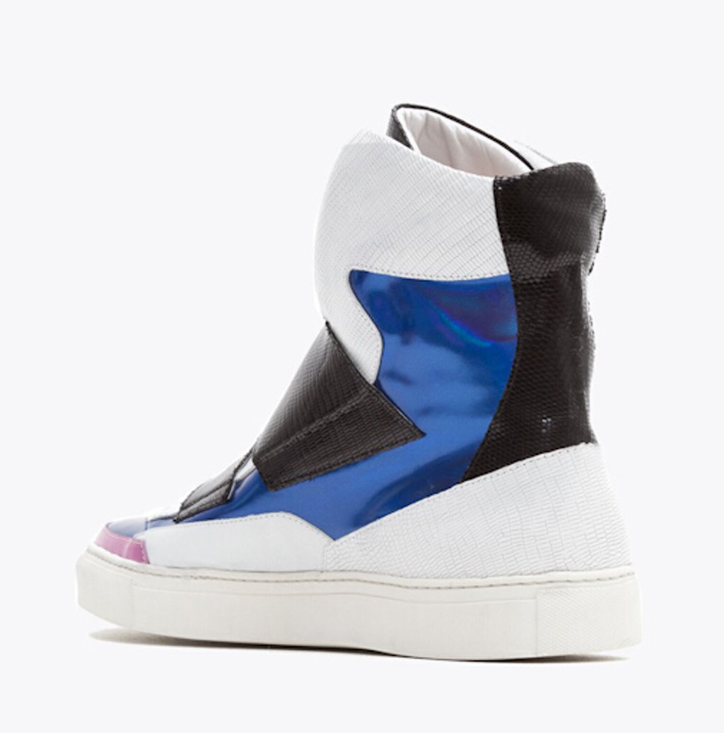 Indie Designs Blue and White Etched Leather Hi-top Sneakers