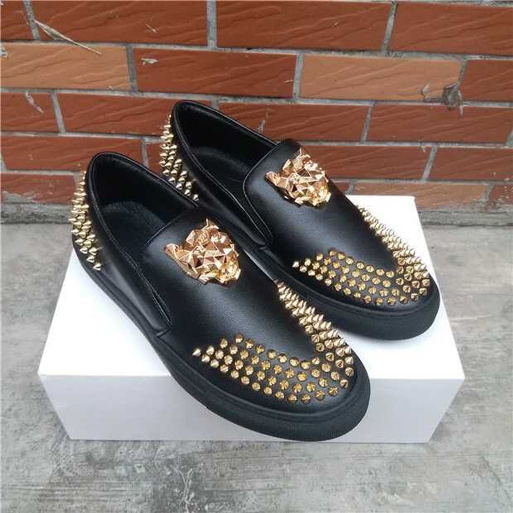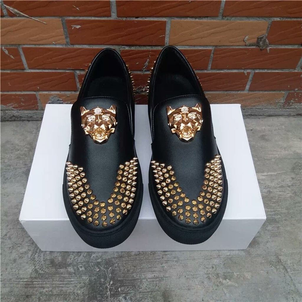 Indie Designs Gold Tiger Studded Leather Slip-on