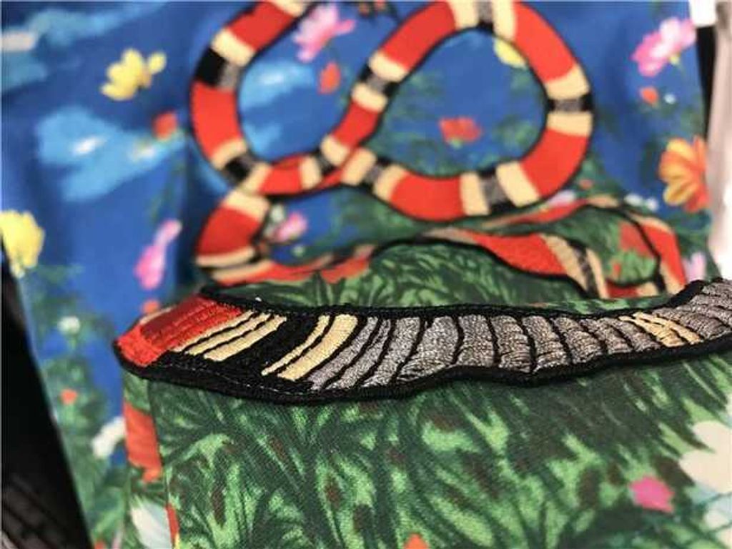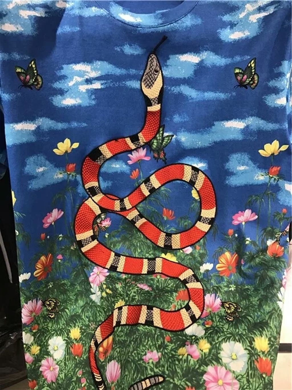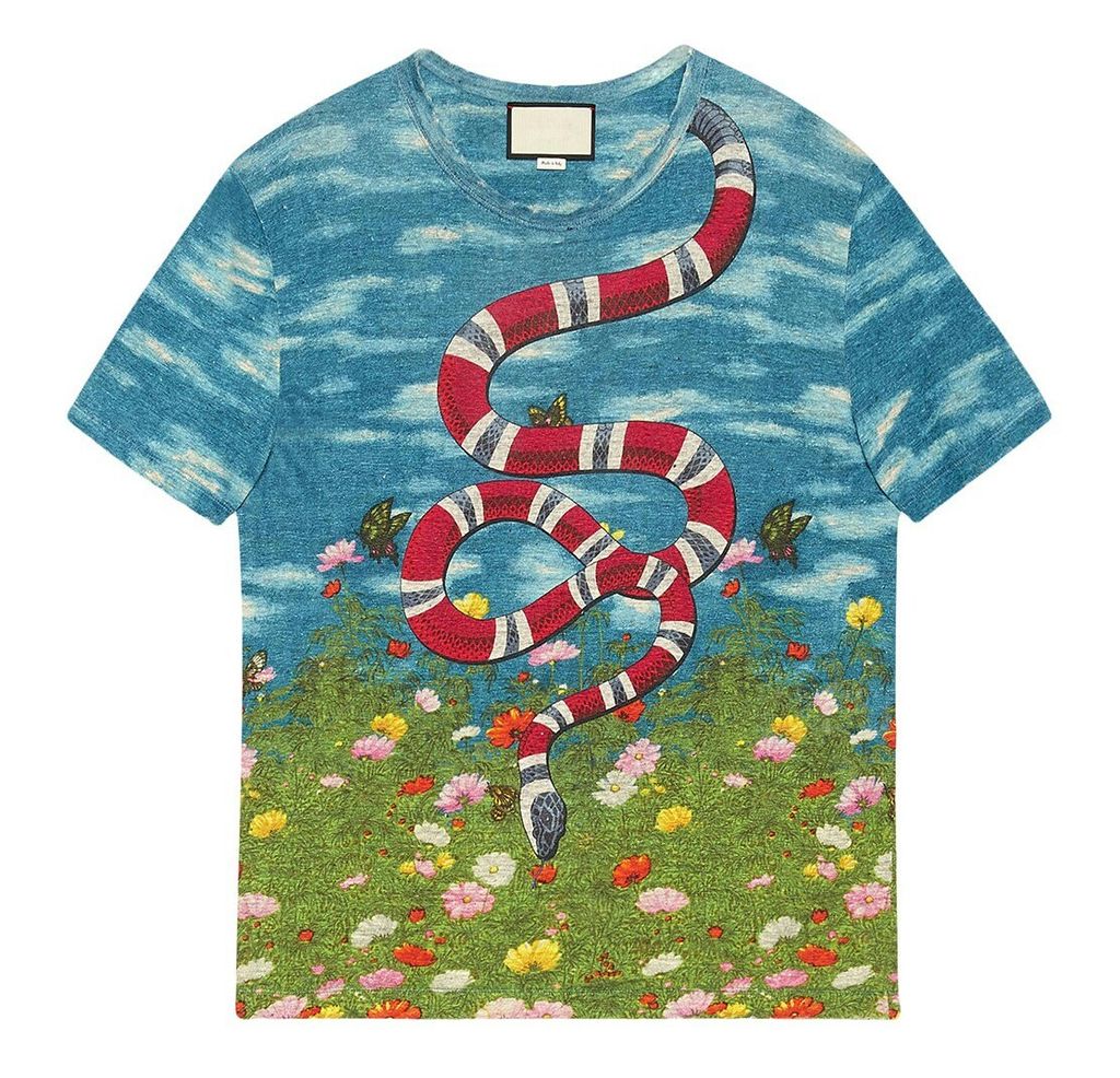 Indie Designs Snake Embroidered Sky and Garden Print T-shirt
