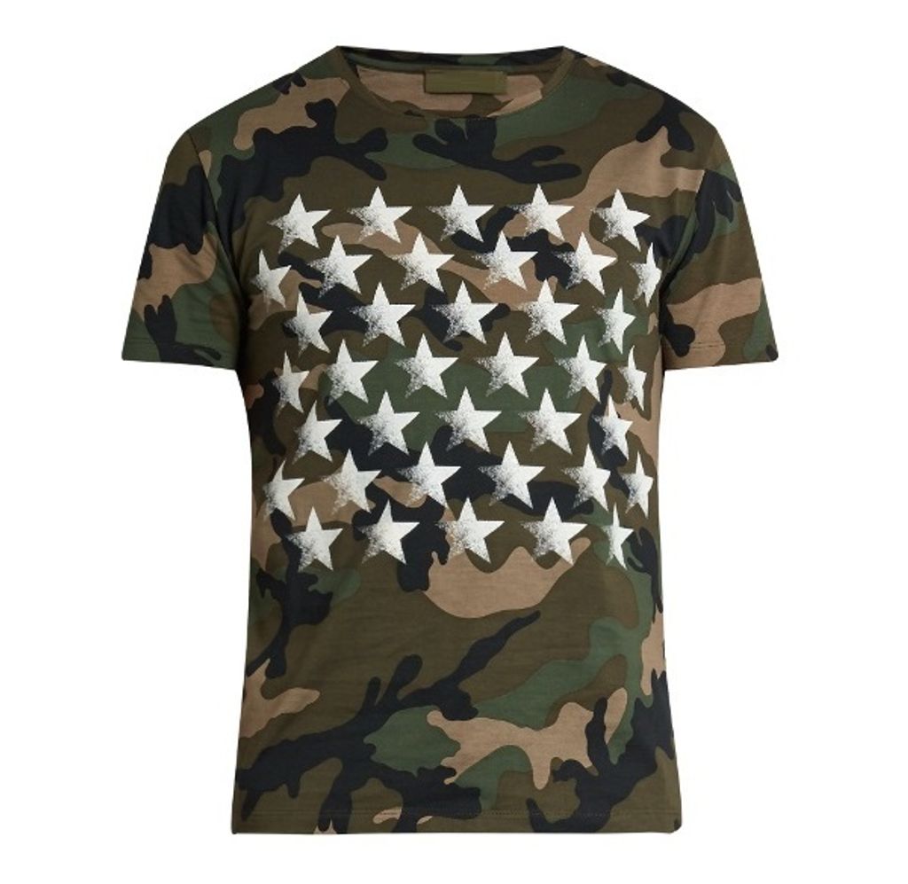 Indie Designs Star Camo Print Cotton Jersey T-Shirt