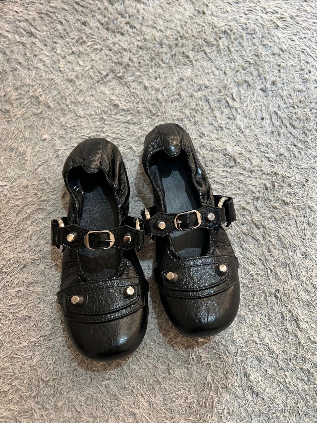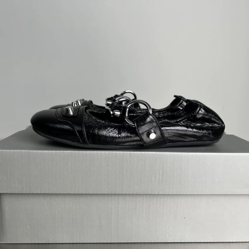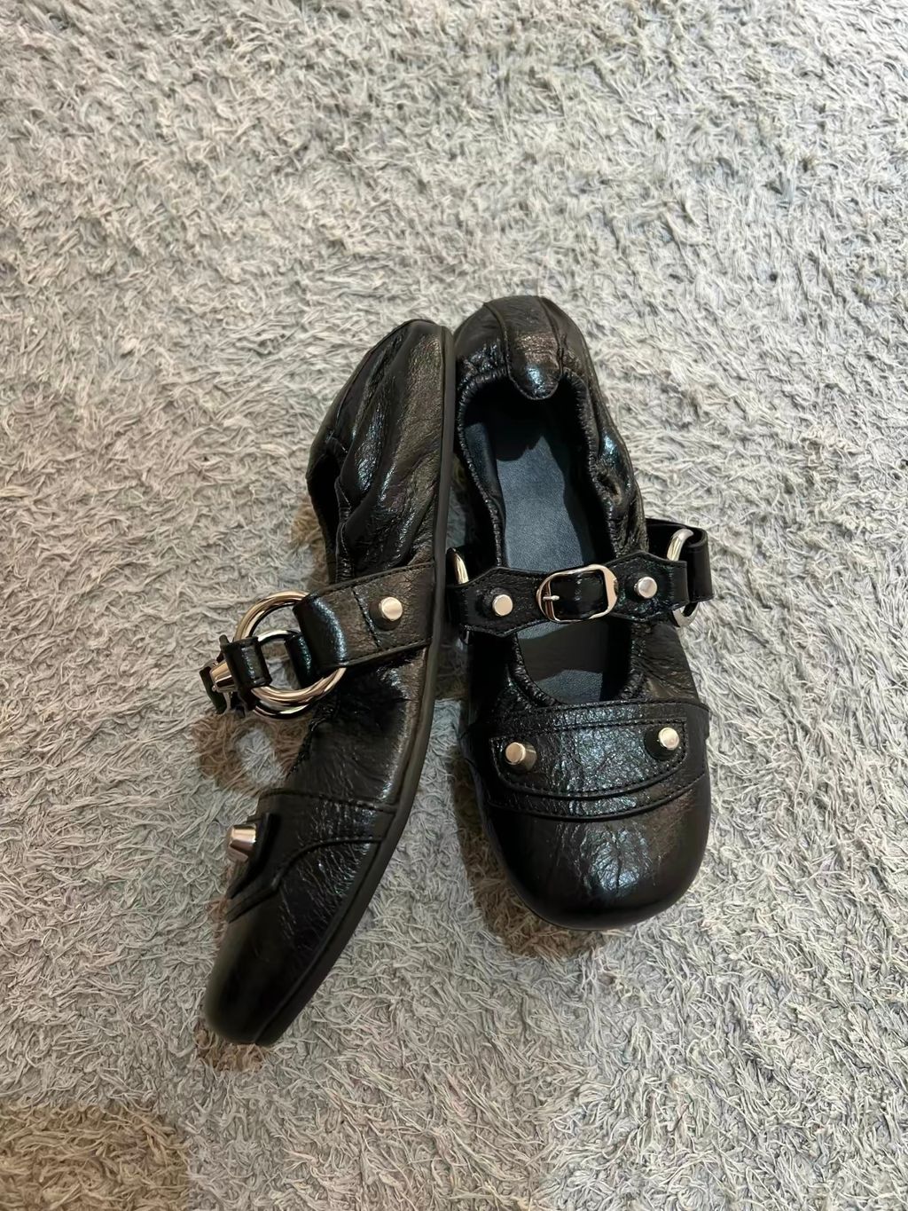 Indie Designs City Embellished Crinkled-leather Ballet Flats