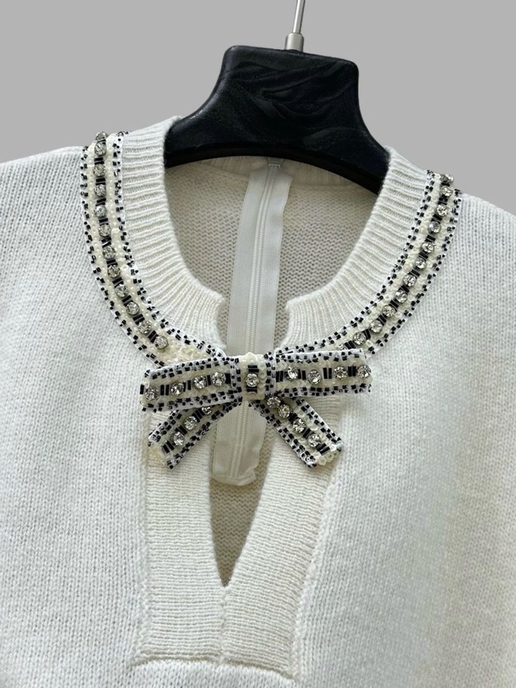 Indie Designs Embroidered Rhinestone Bow Jumper