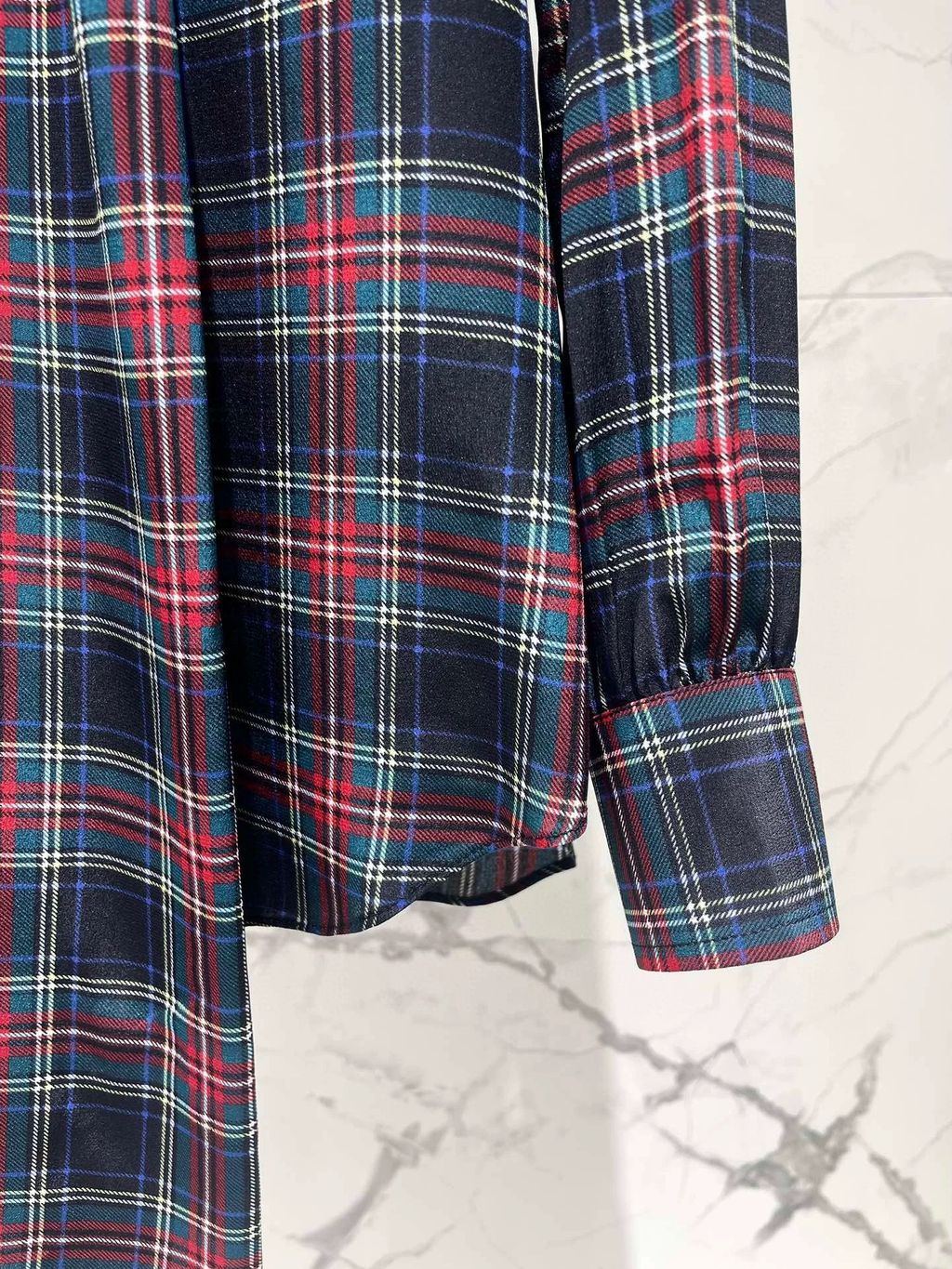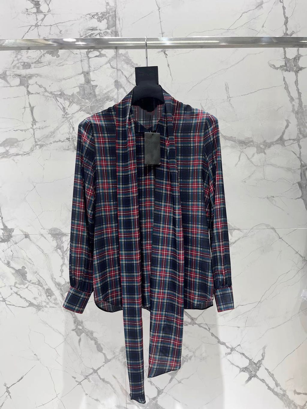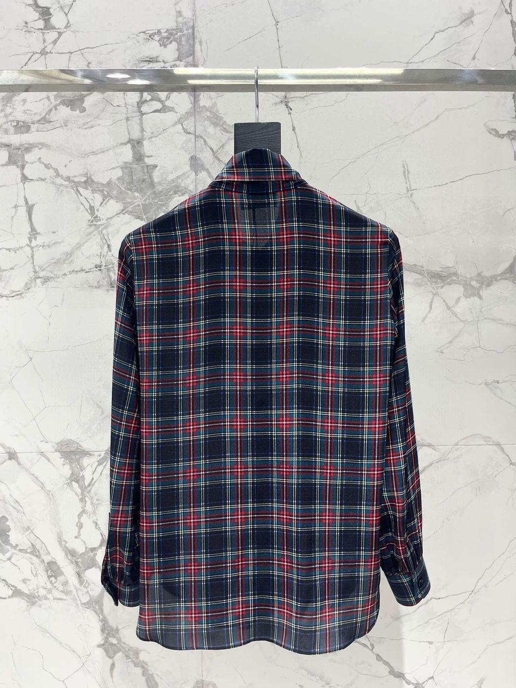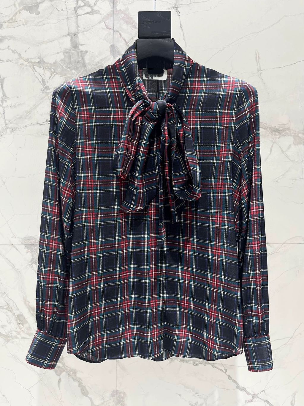 Indie Designs Pussy-bow Checked Silk-chiffon Blouse
