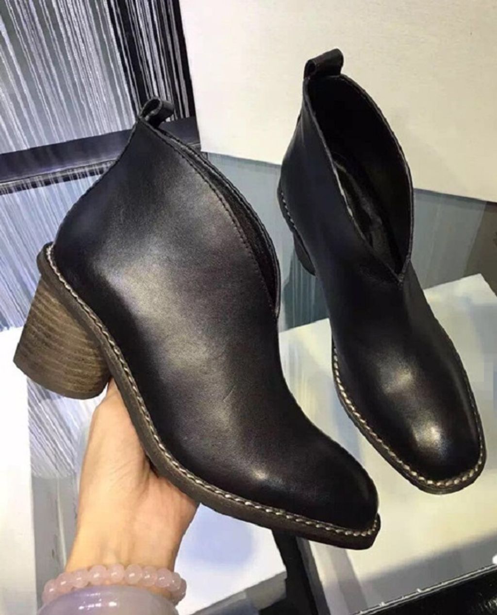 Indie Designs Barrel Heel V Neck Ankle Boots