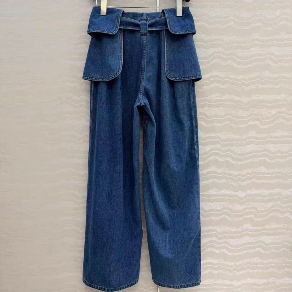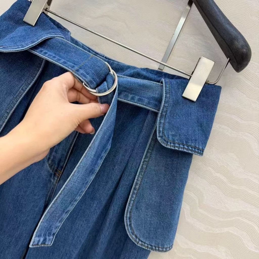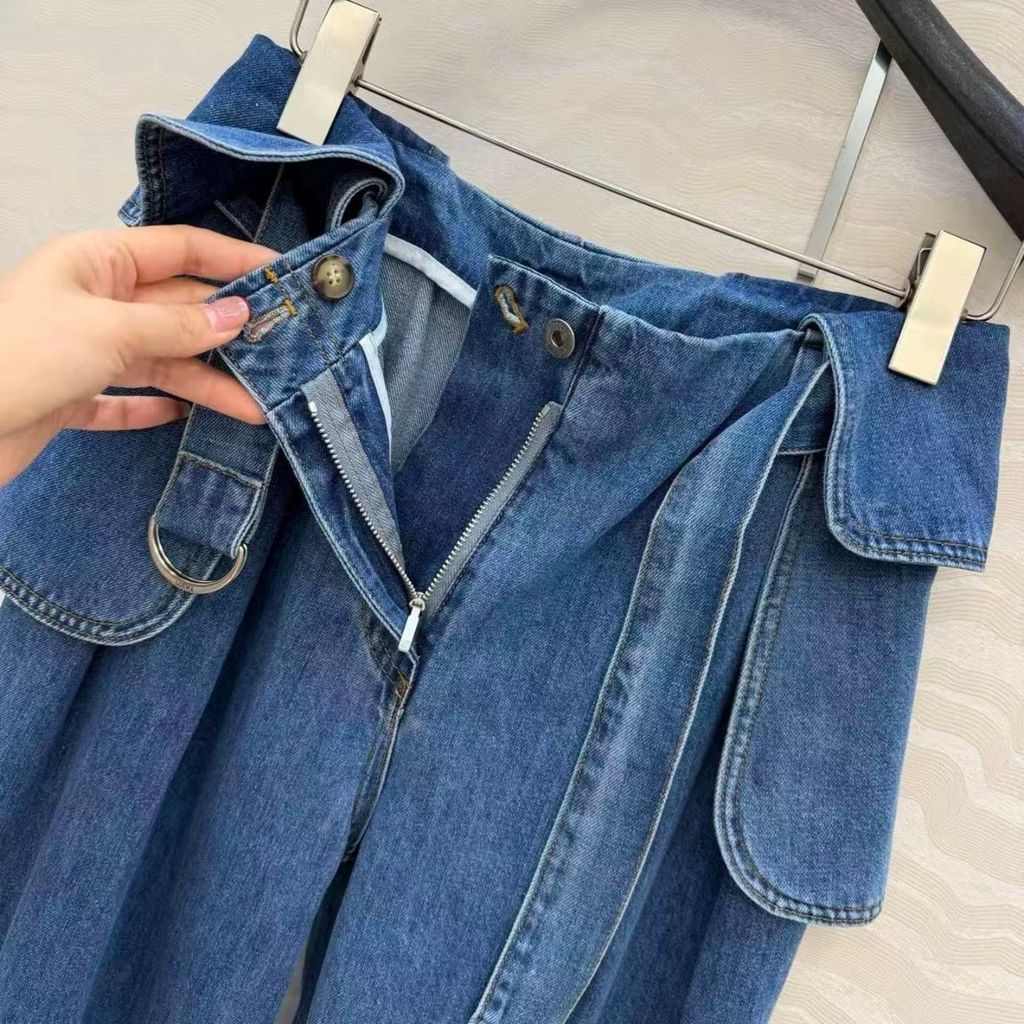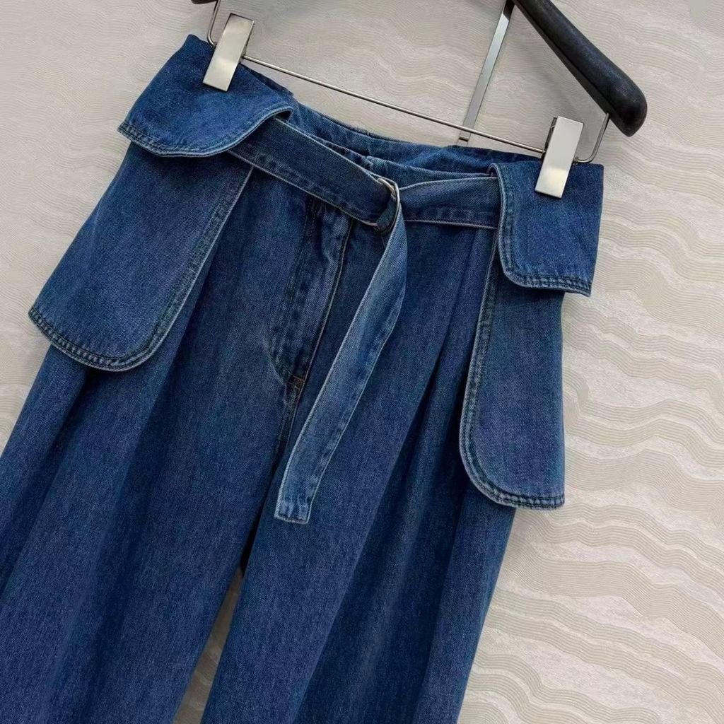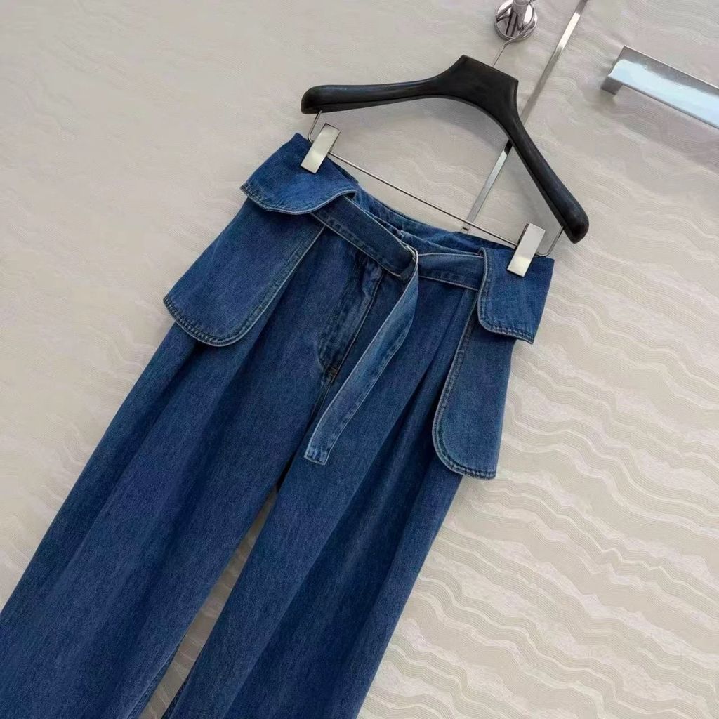 Indie Designs Belted Pleated Wide-leg Jeans