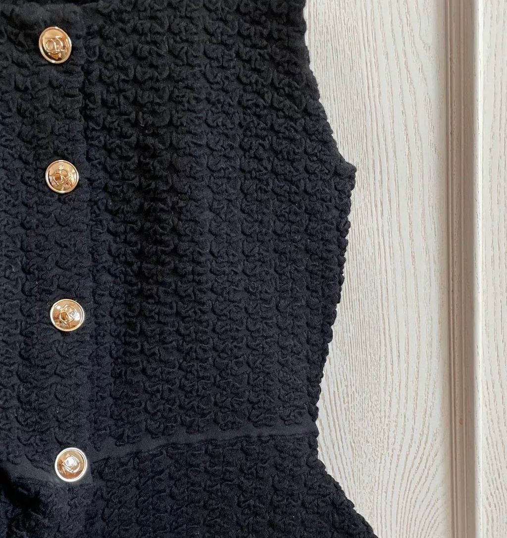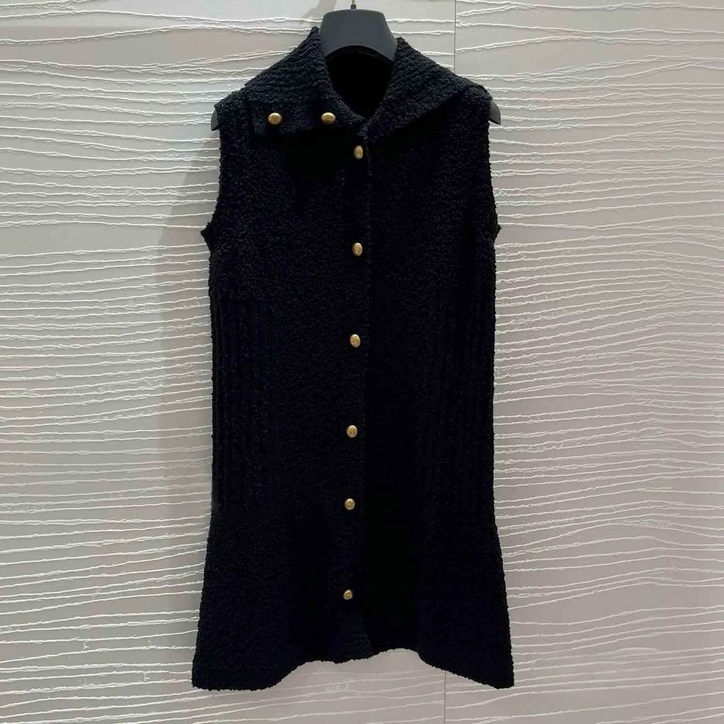 Indie Designs Black Cotton- and Wool-Blend Knit Long Vest