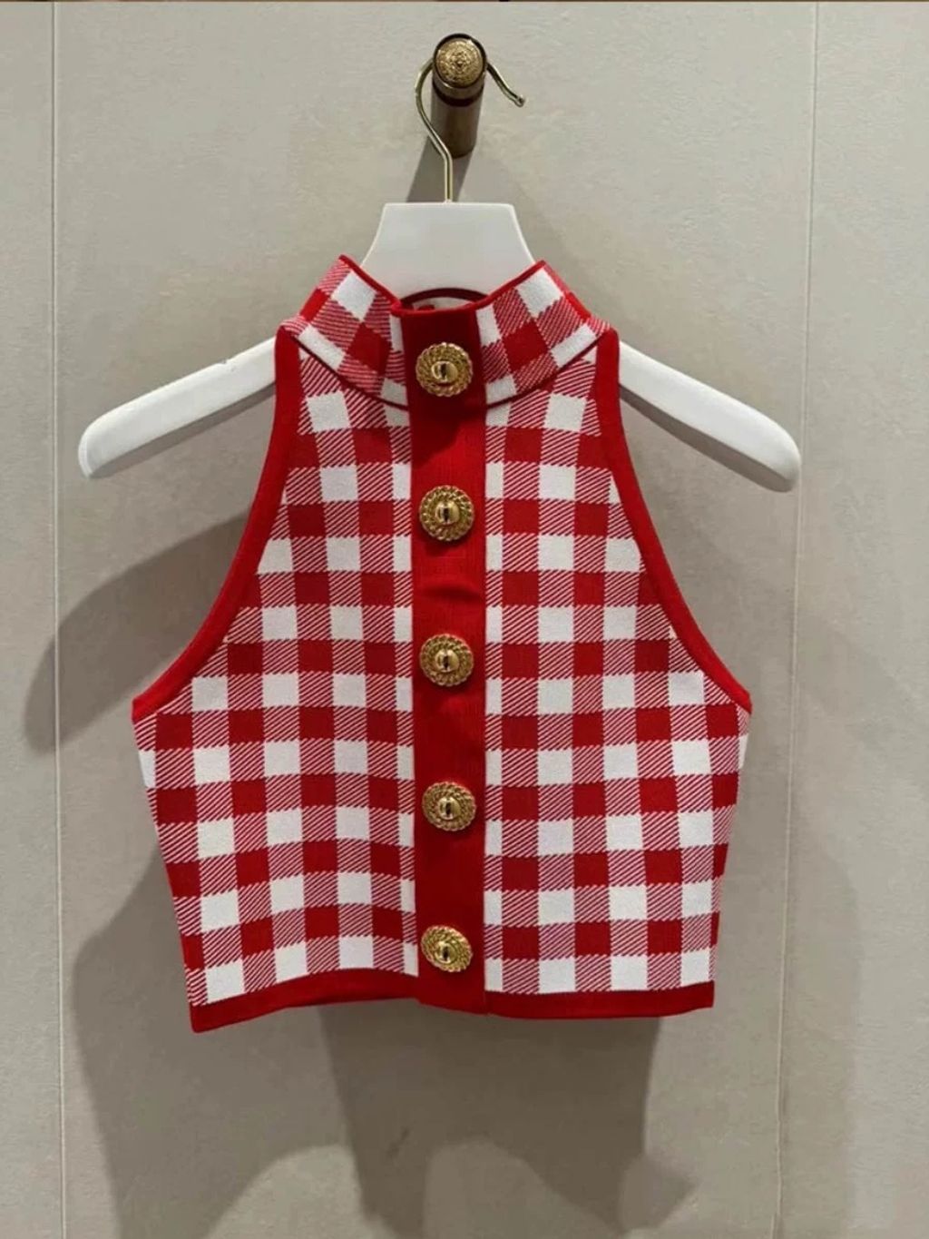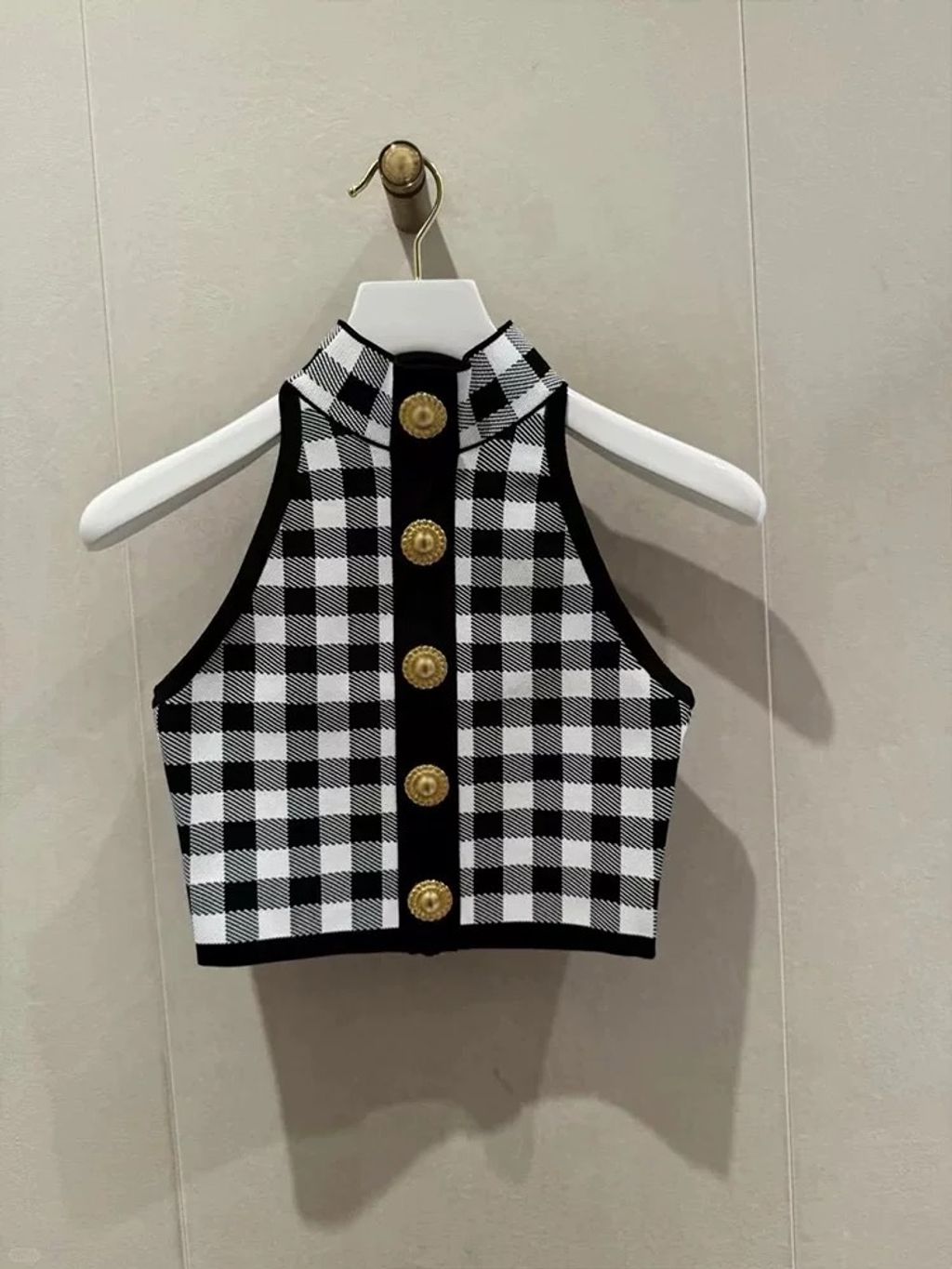 Indie Designs Check-pattern Knitted Crop Top