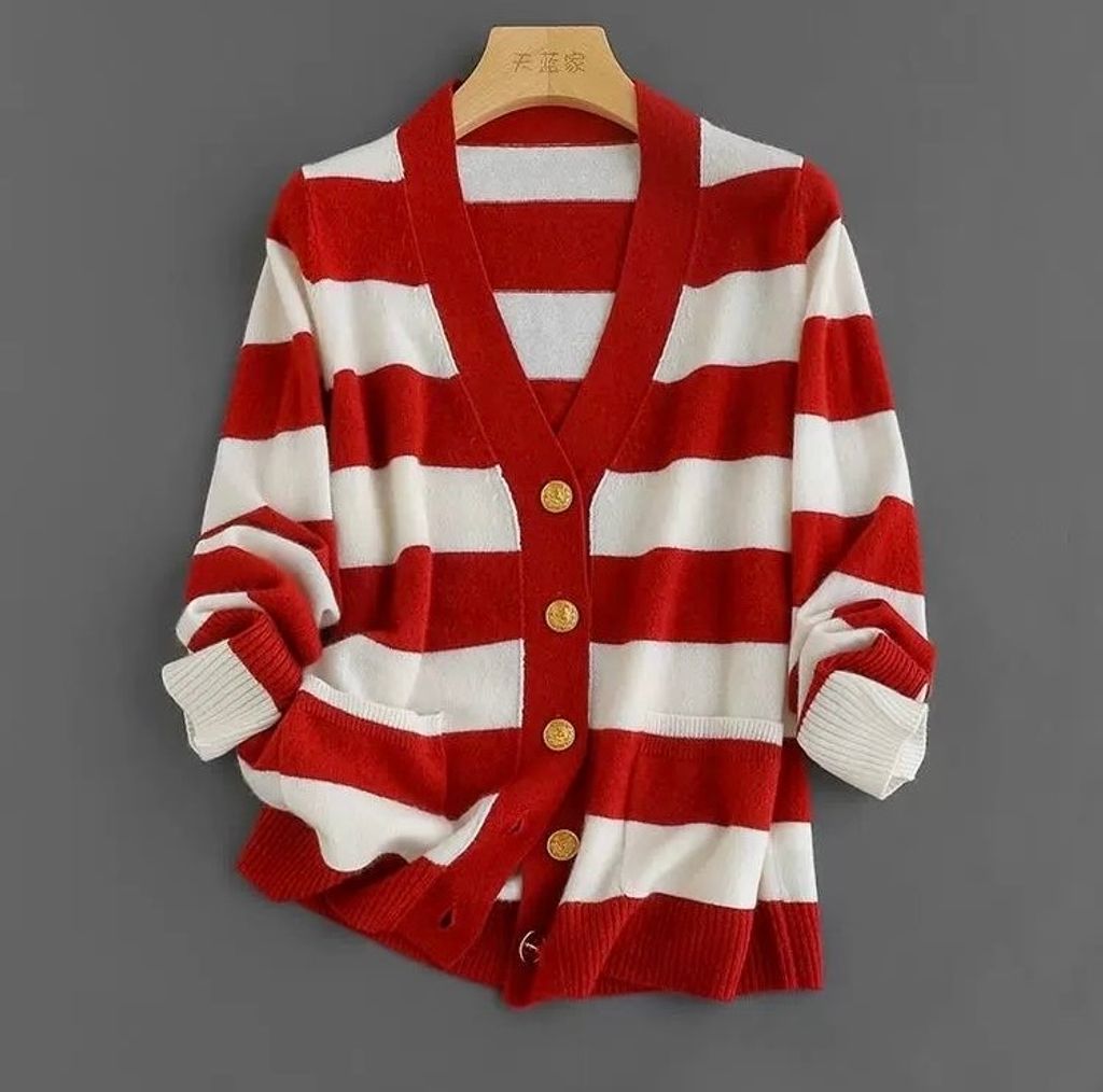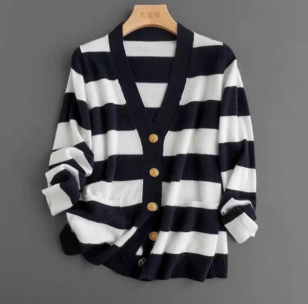 Indie Designs Chunky Stripes Cashmere Cardigan