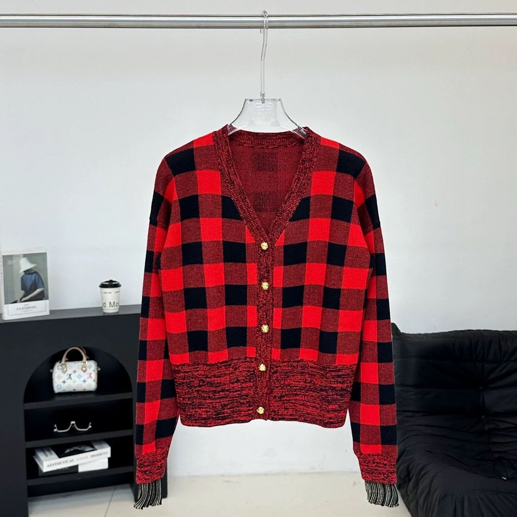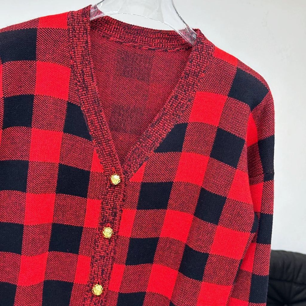 Indie Designs Graphic Check Knit Cardigan