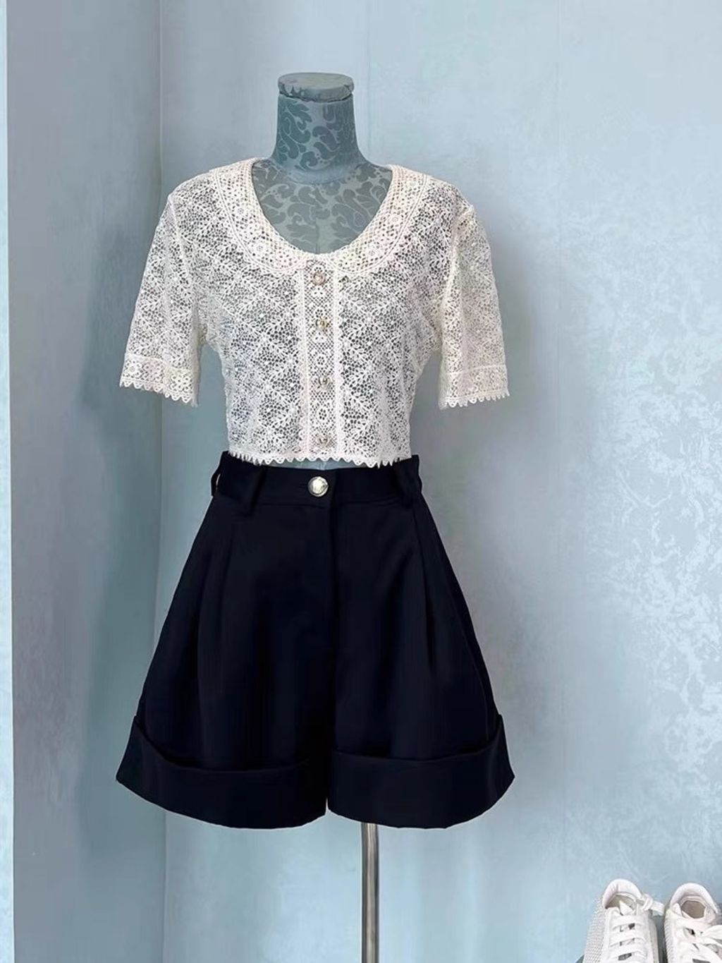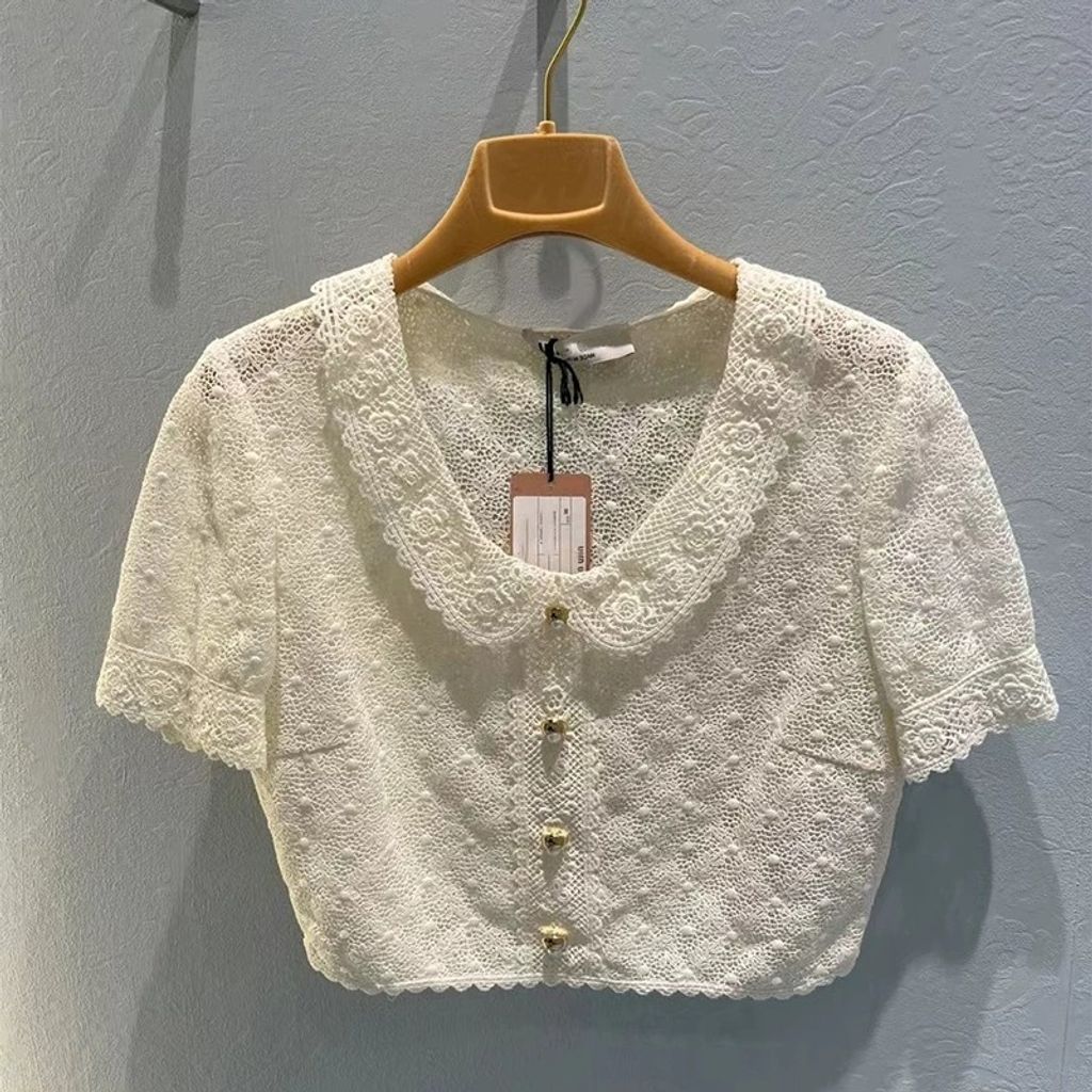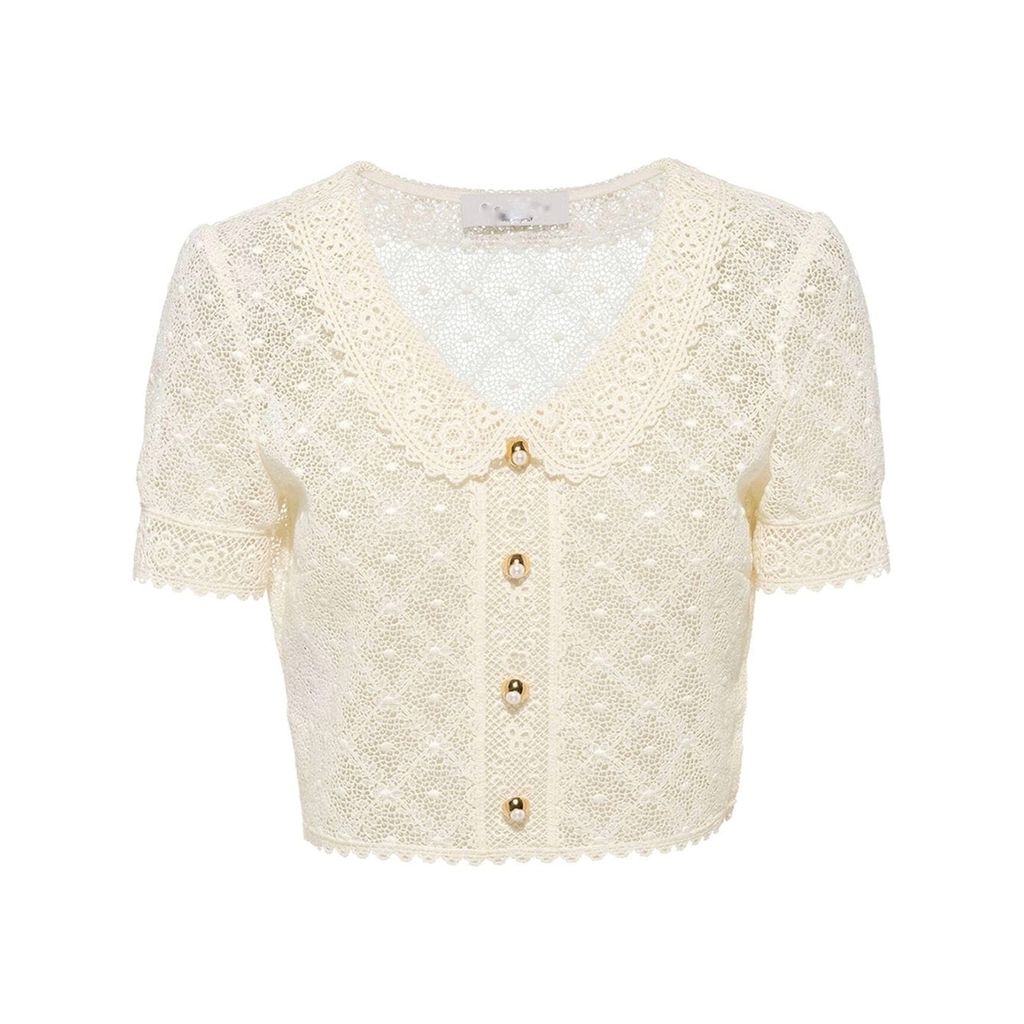 Indie Designs Lace Short-sleeve Cropped Top