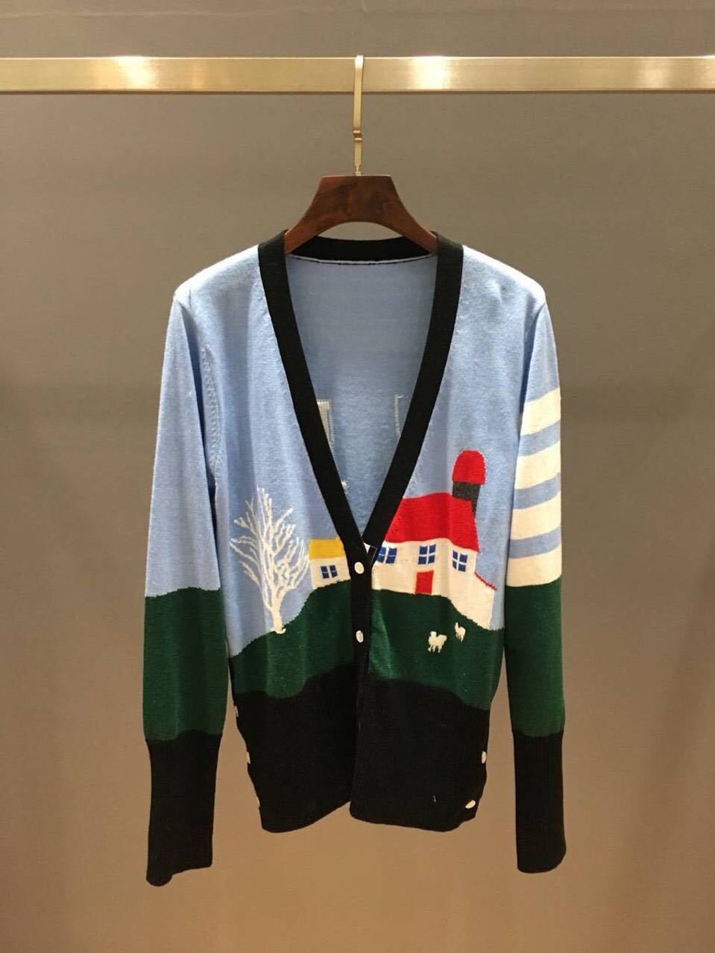 Indie Designs Multicolor Landscape Intarsia Cardigan