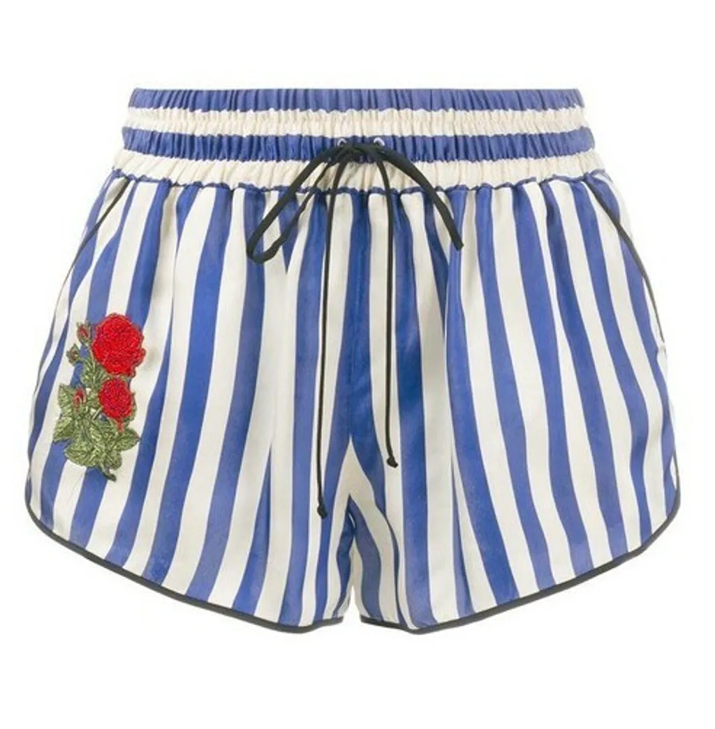 Indie Designs Rose-embroidered Striped Shorts