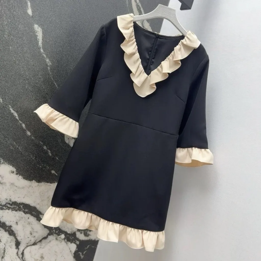 Indie Designs Ruffled Wool Crepe Mini Dress