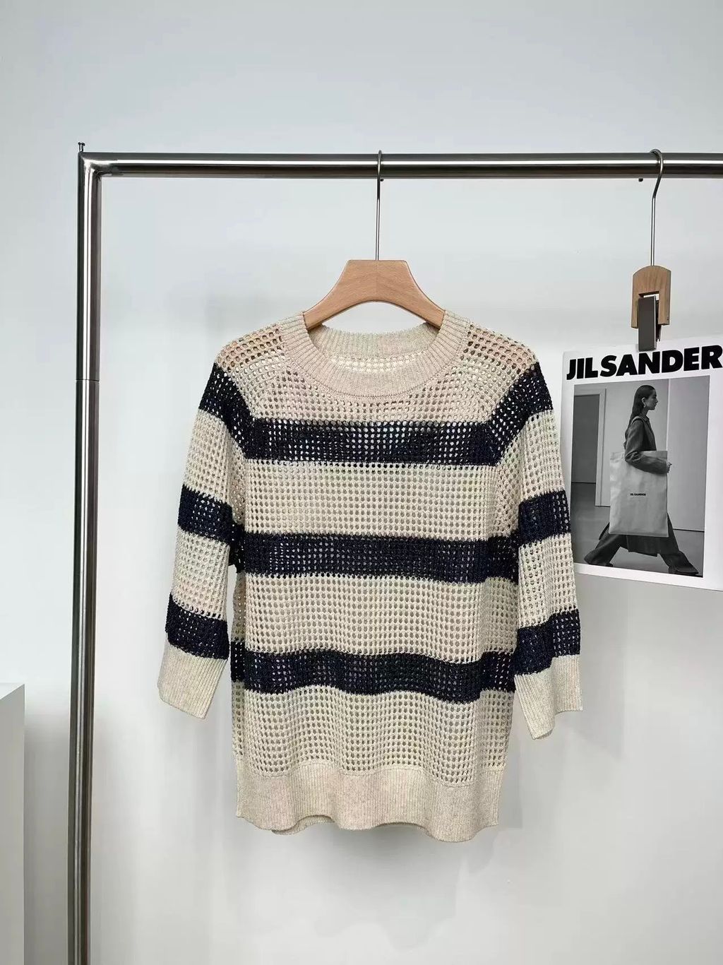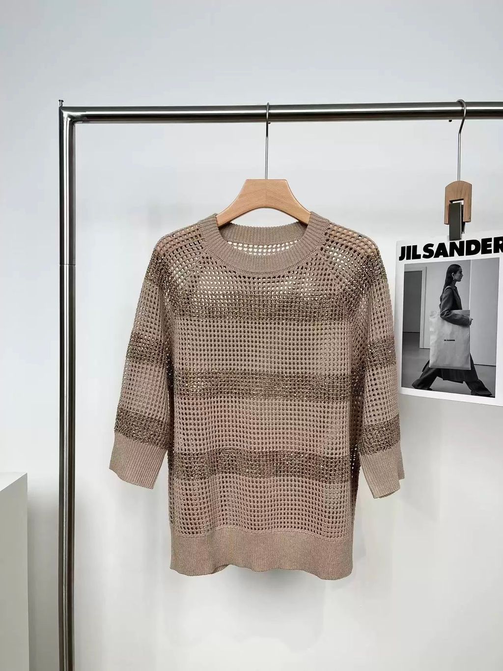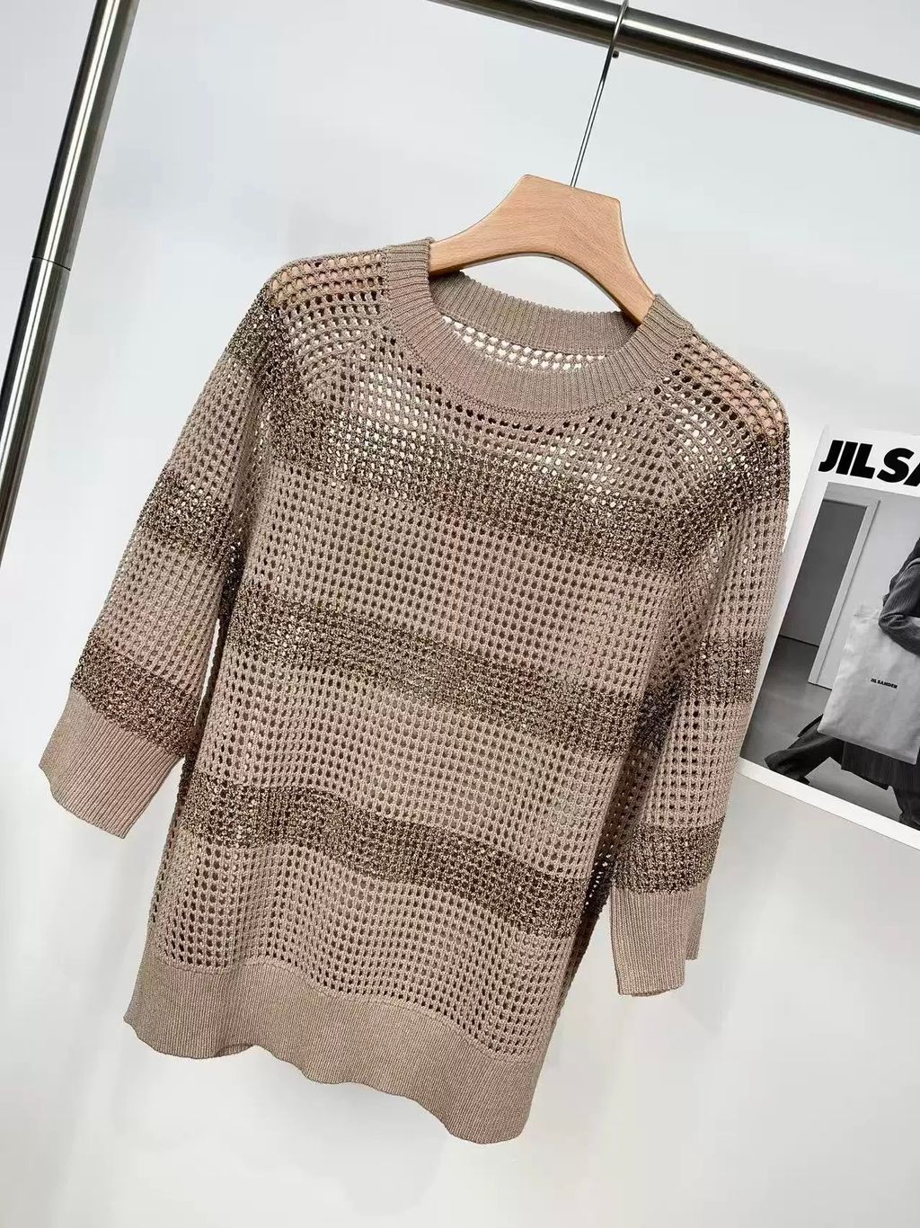 Indie Designs Sequin-embellished Striped Open-knit Sweater