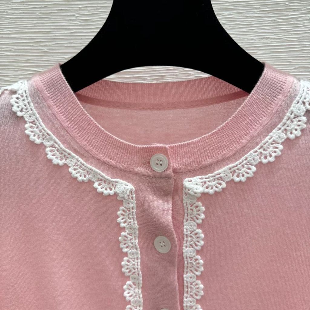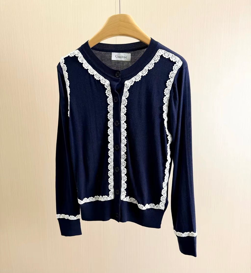 Indie Designs Silk Knit and White Lace Cardigan