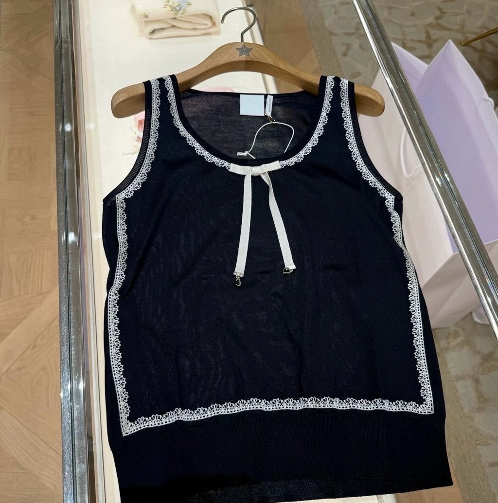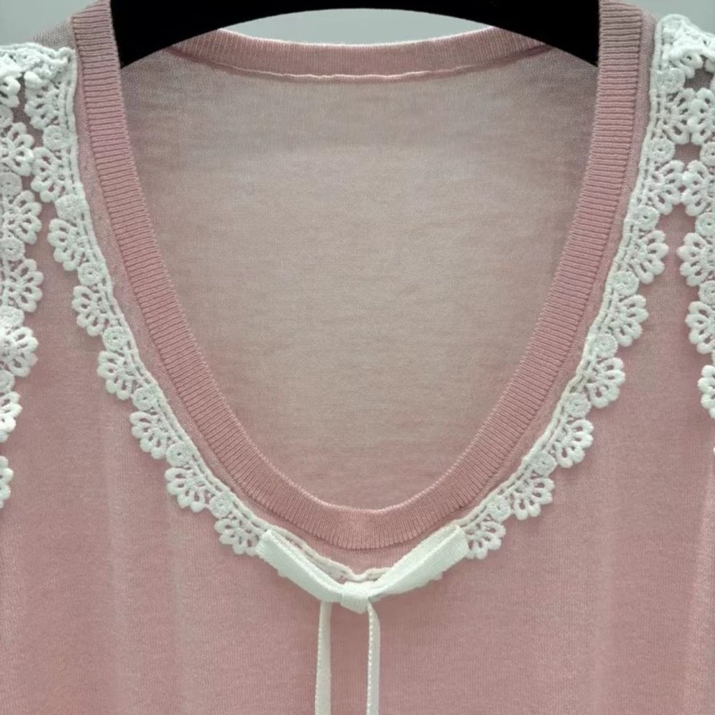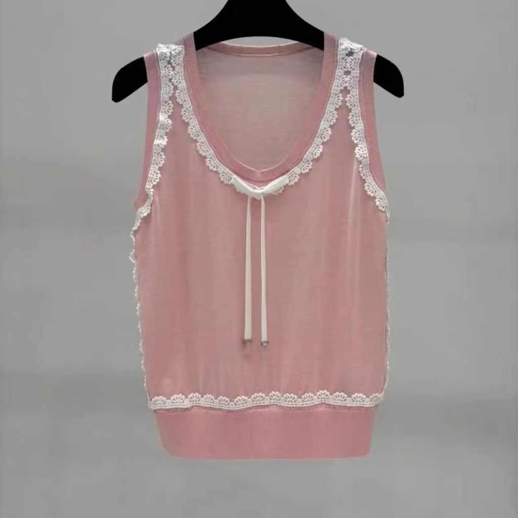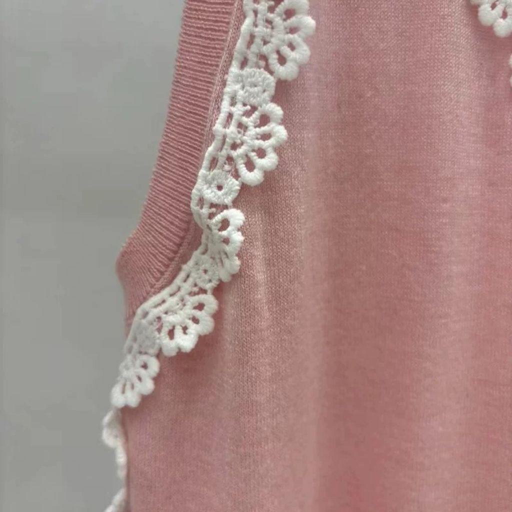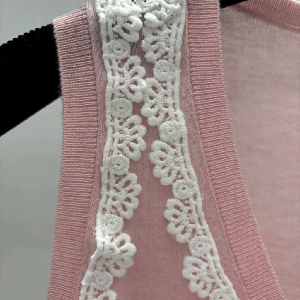 Indie Designs Silk Knit and White Lace Sweater Vest