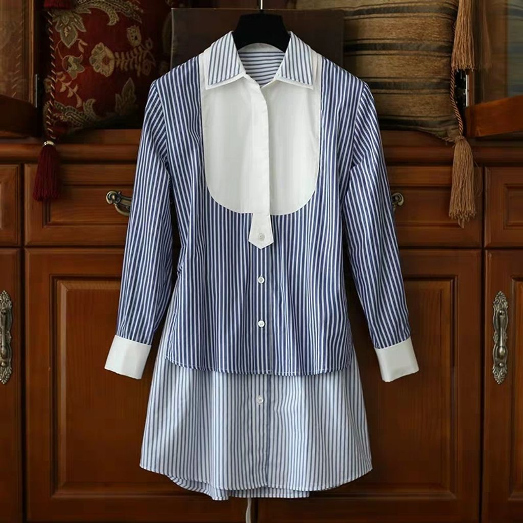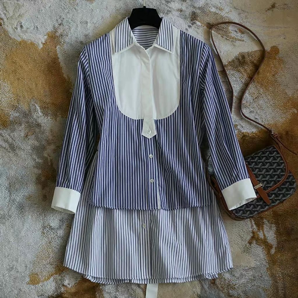 Indie Designs Paneled Striped Cotton Poplin Shirt