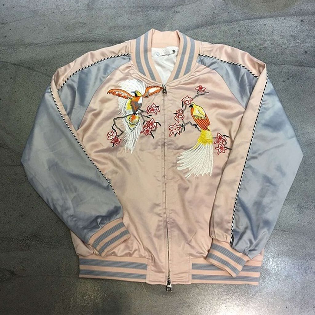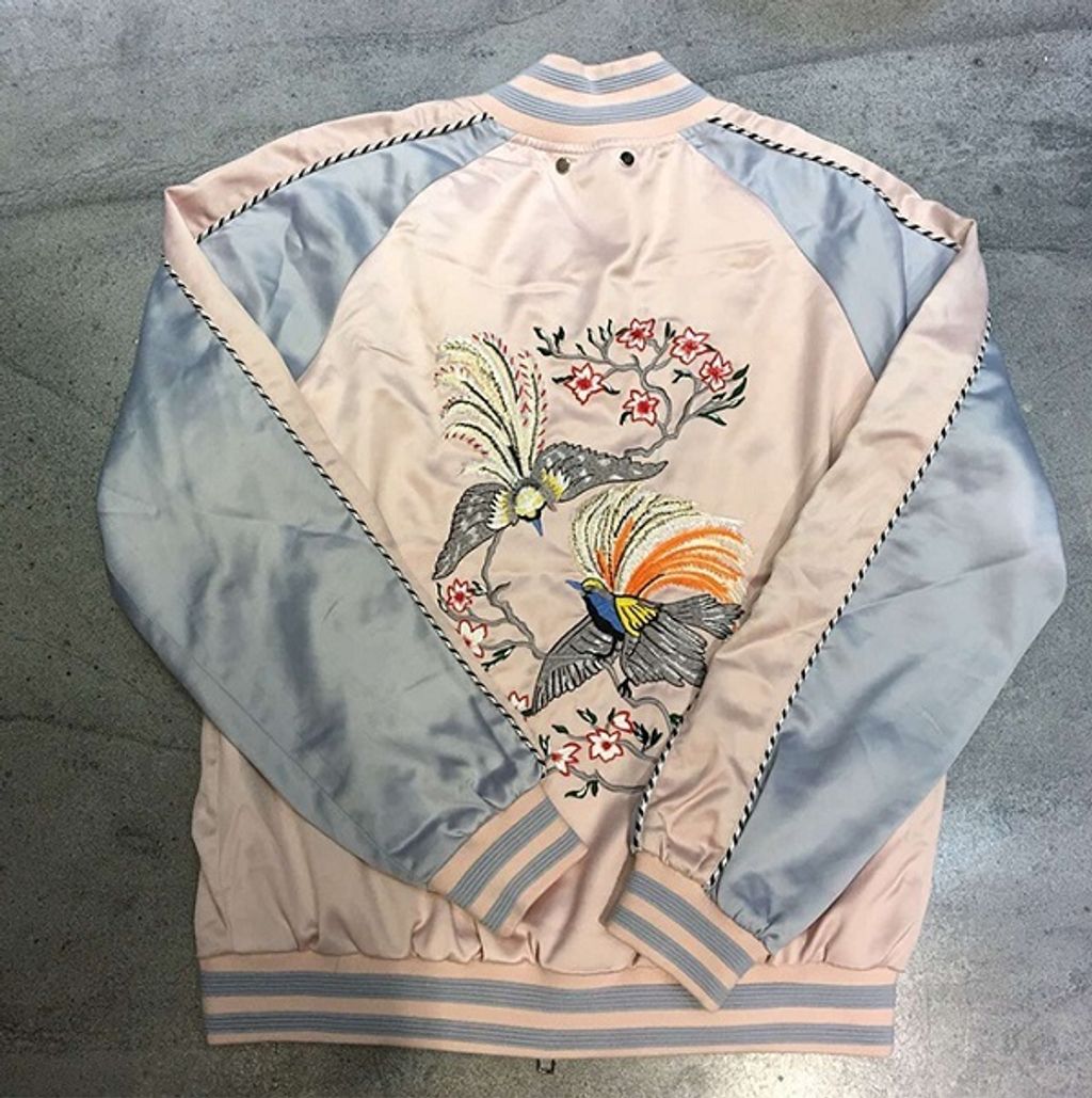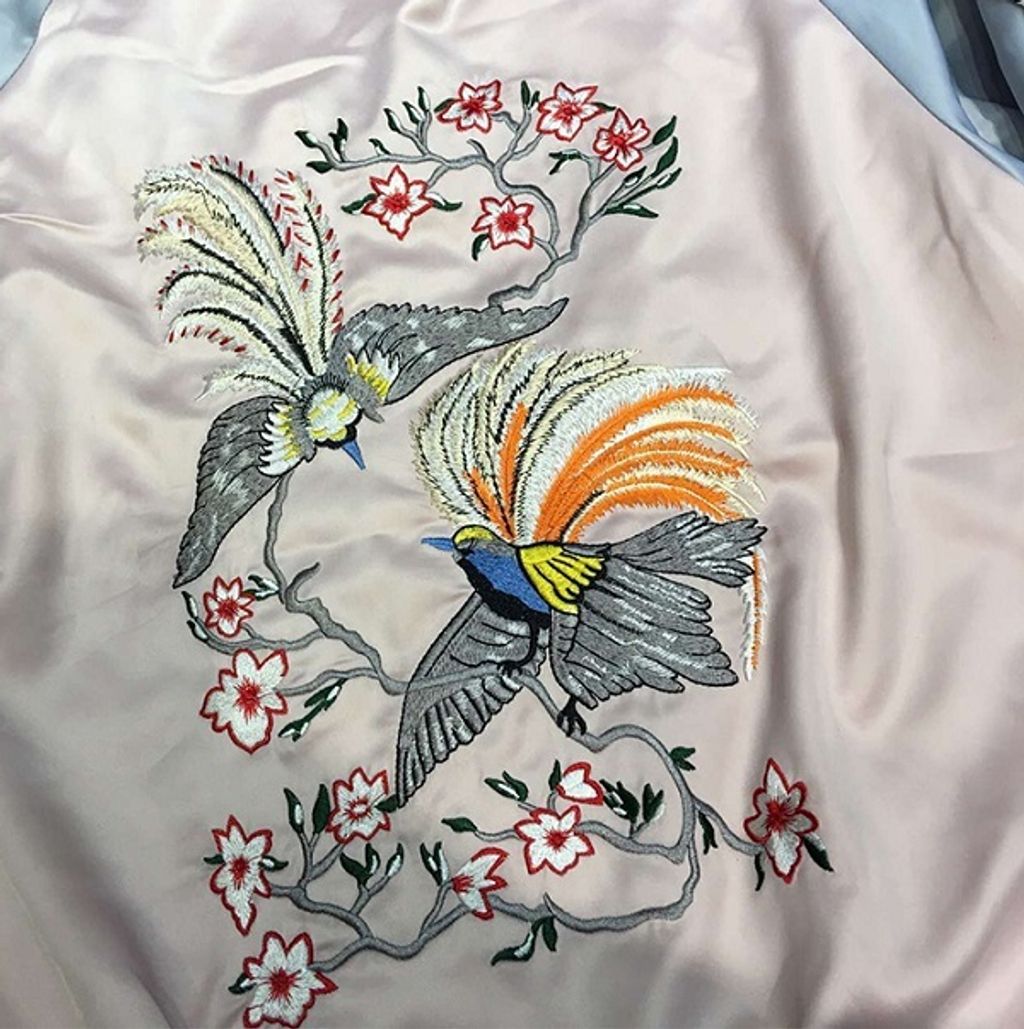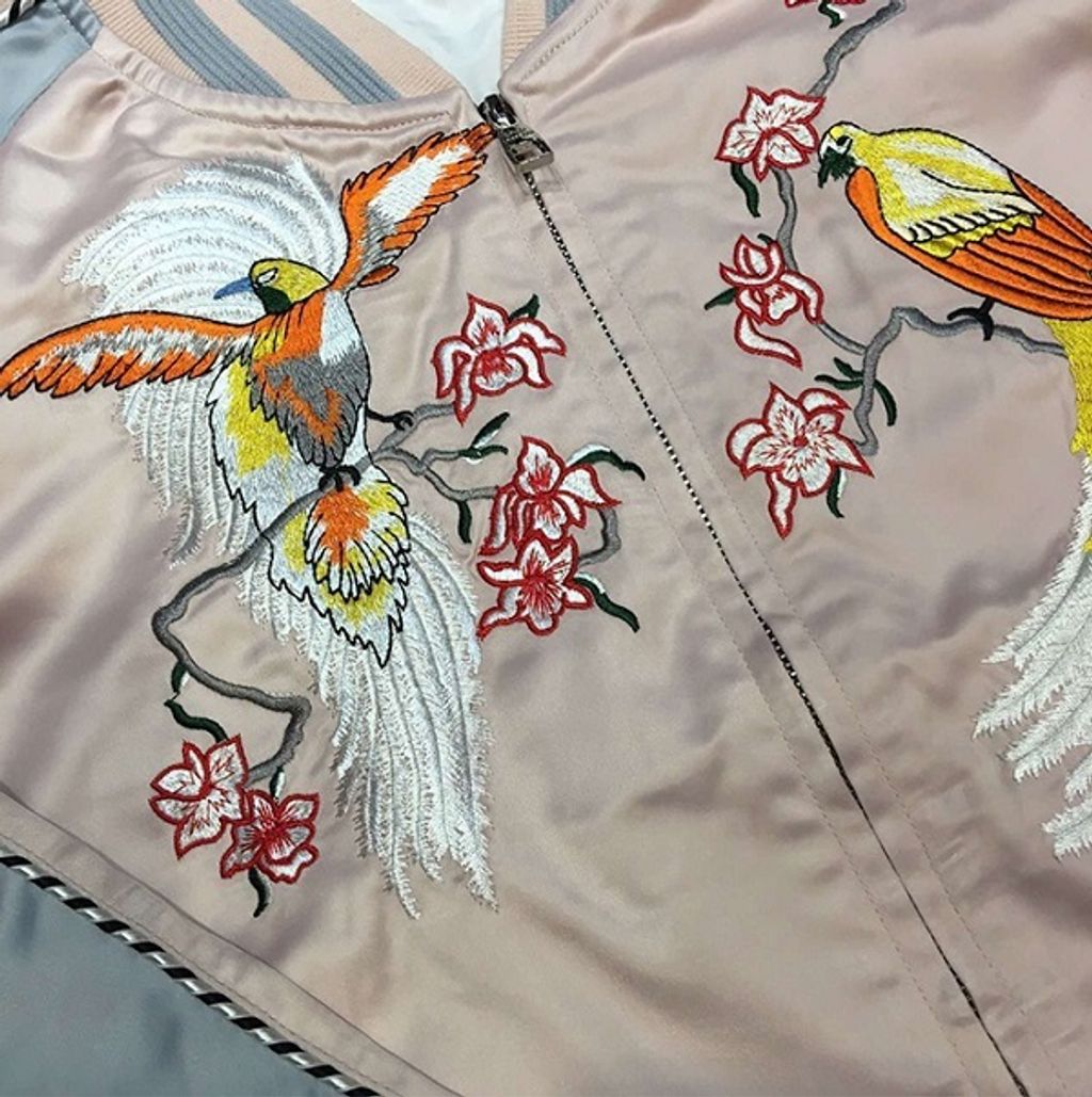 Indie Designs Bird Embroidered Pink Satin Skajan Souvenir Jacket