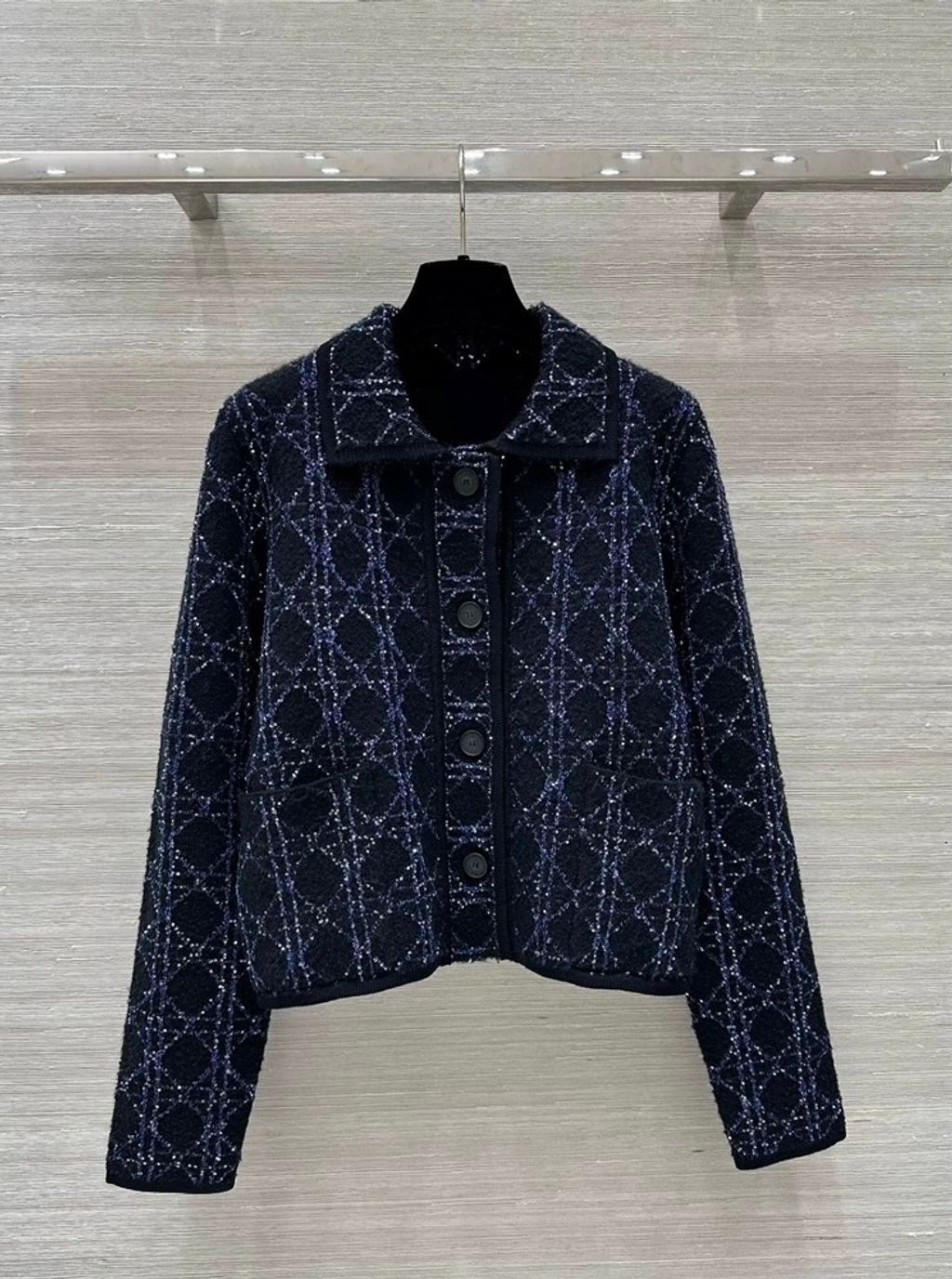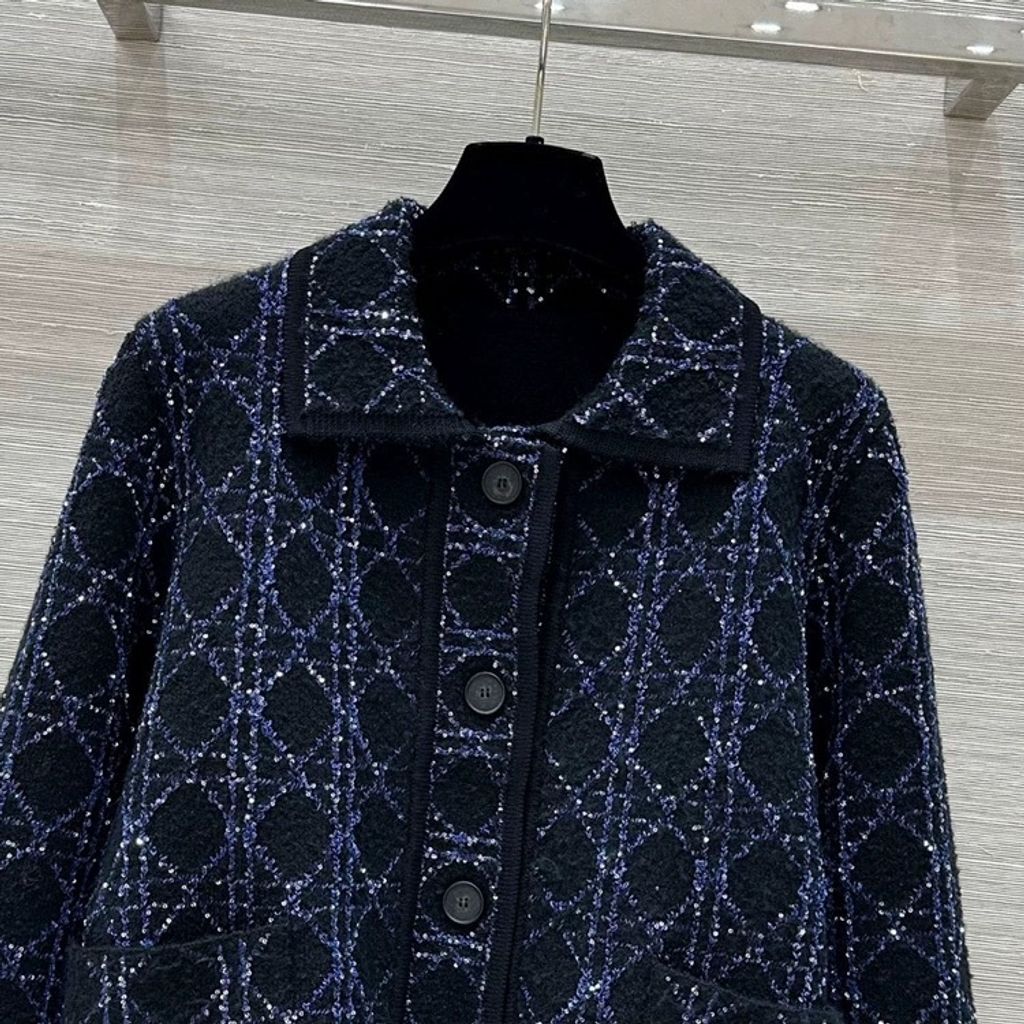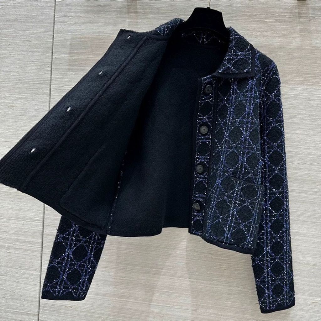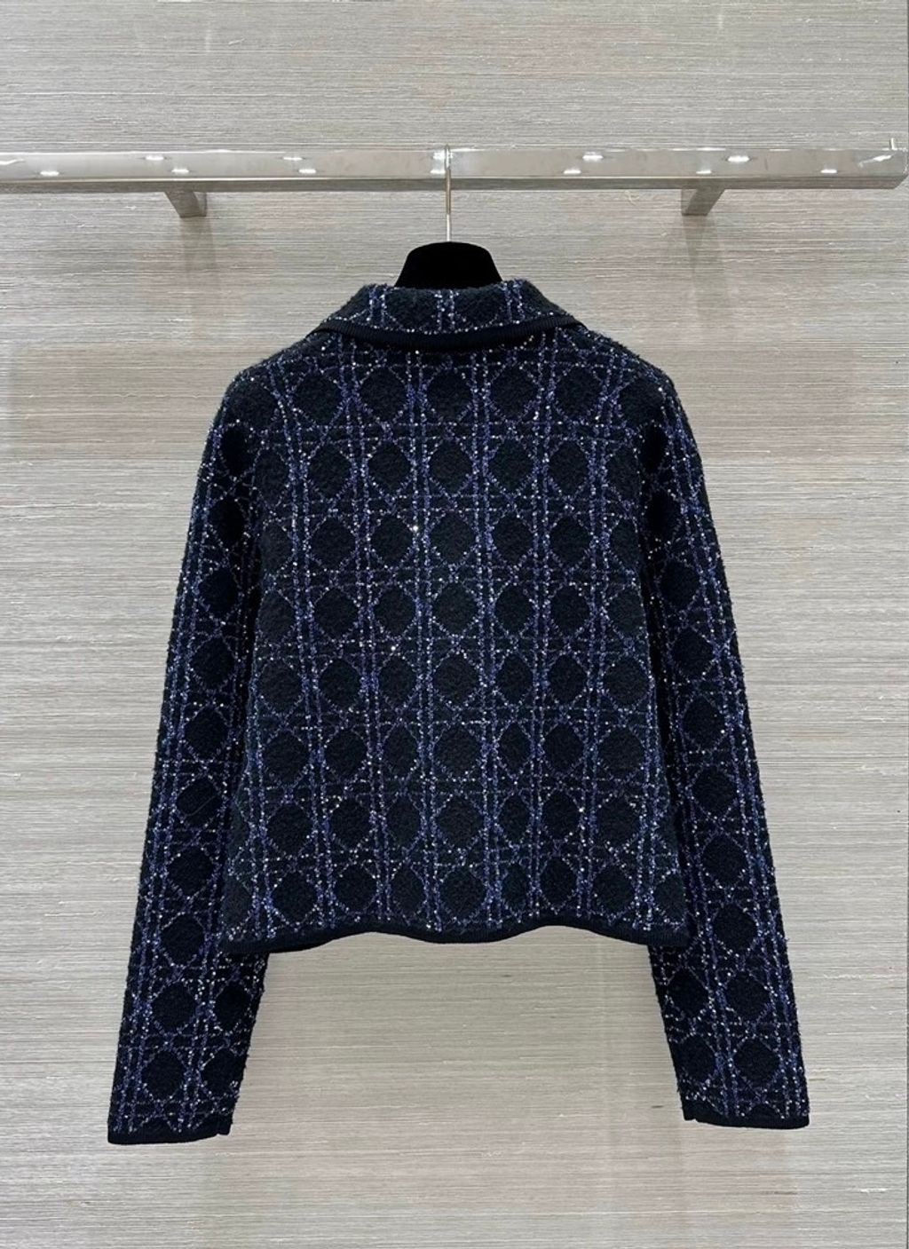 Indie Designs Blue and Gold-Tone Blended Cotton and Silk Tweed Jacket