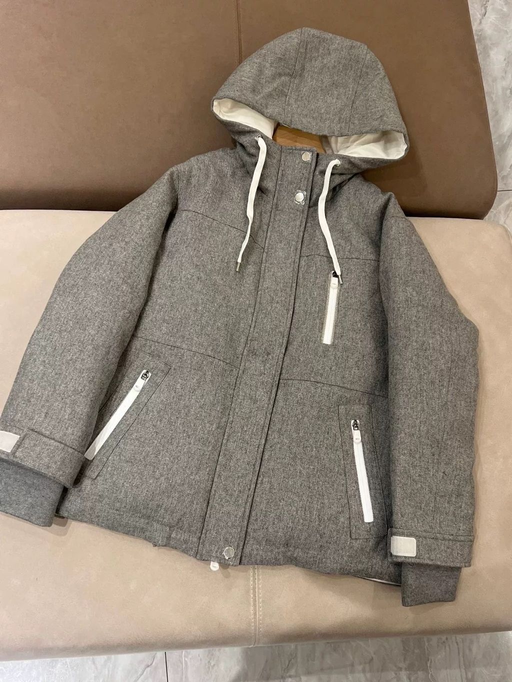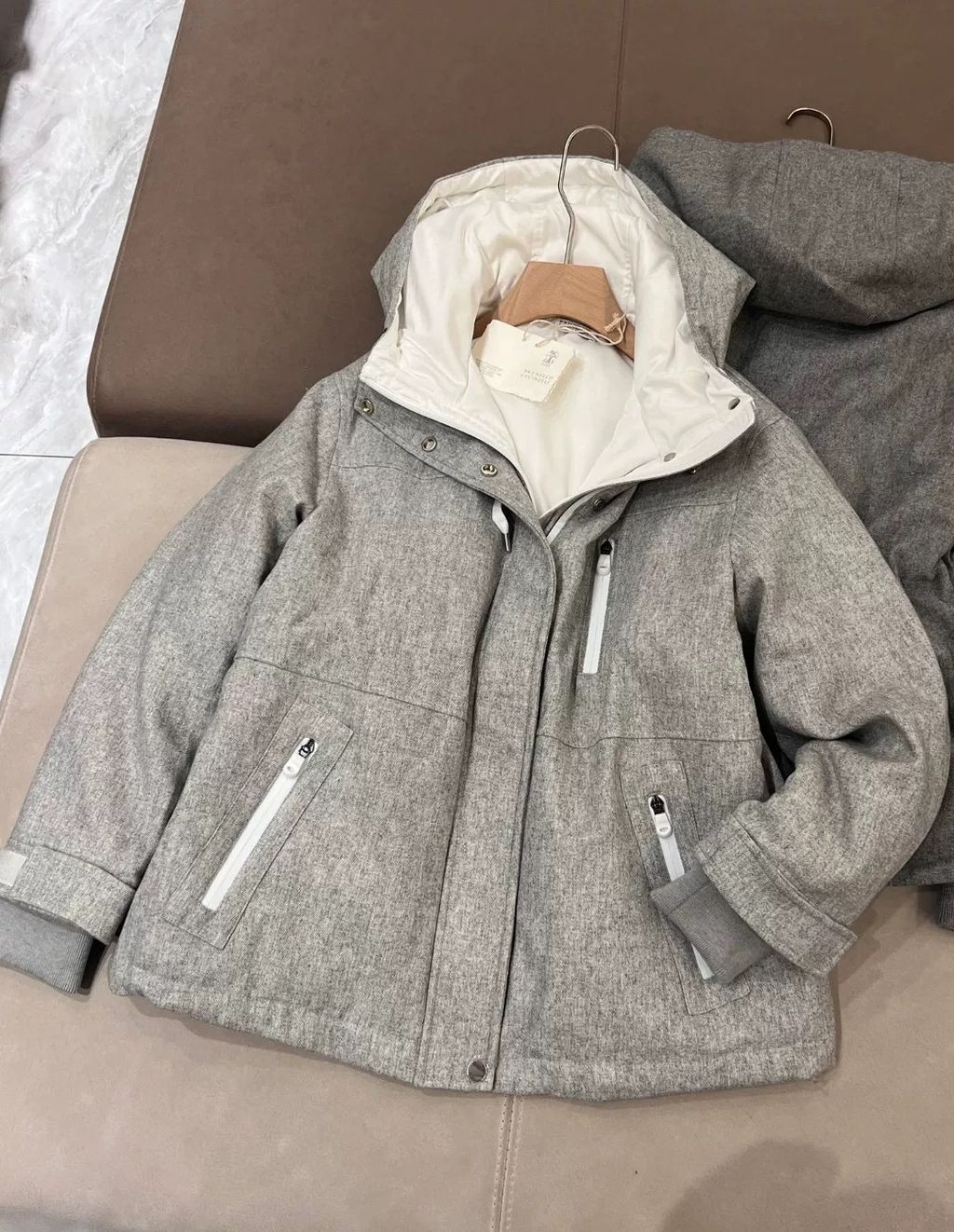 Indie Designs Bonded Wool Flannel Hooded Down Jacket