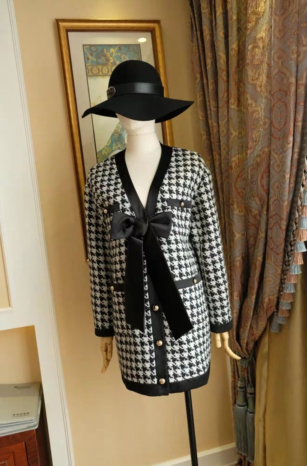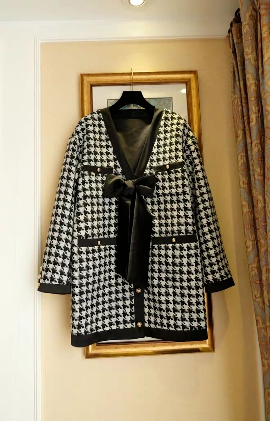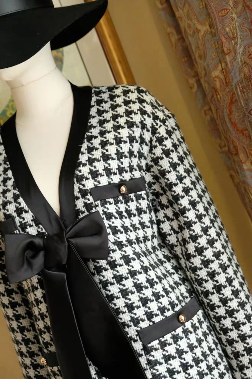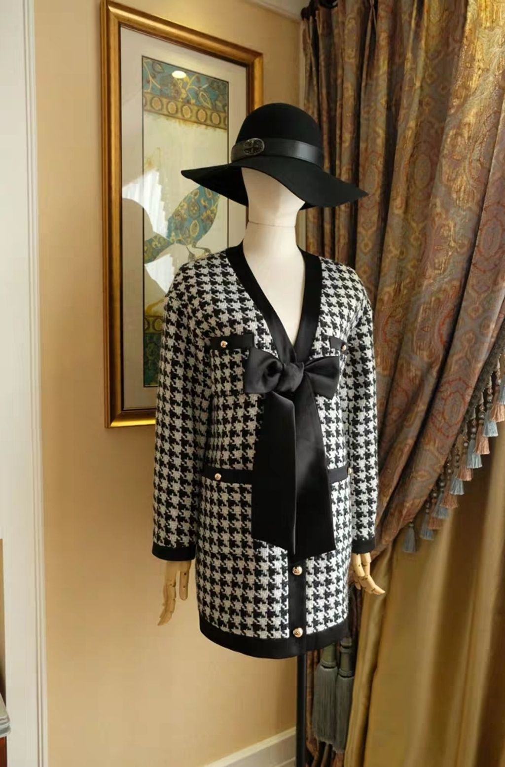 Indie Designs Bow Embellished Houndstooth Cardigan