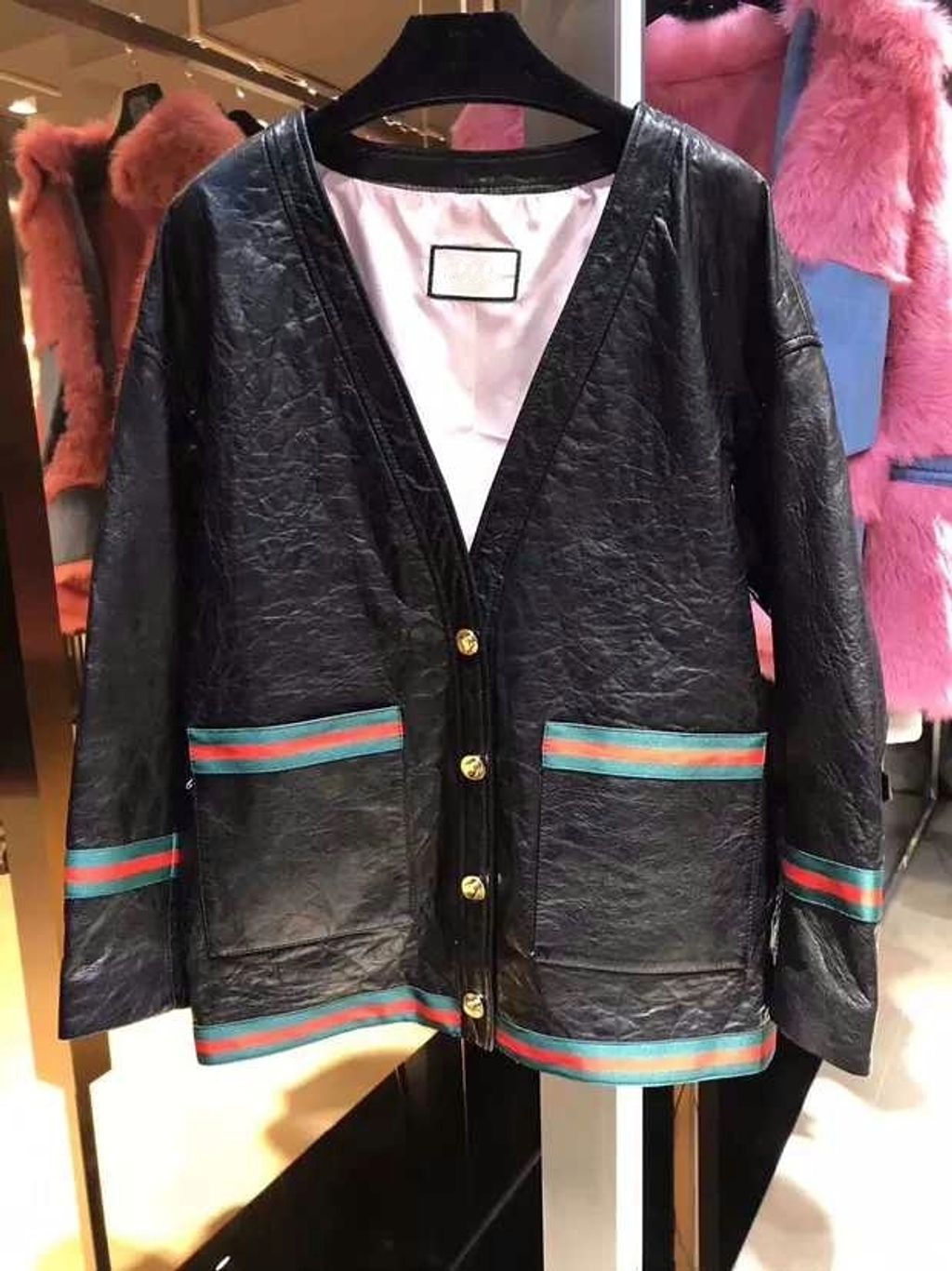 Indie Designs Contrast Trim Button Down Leather Jacket