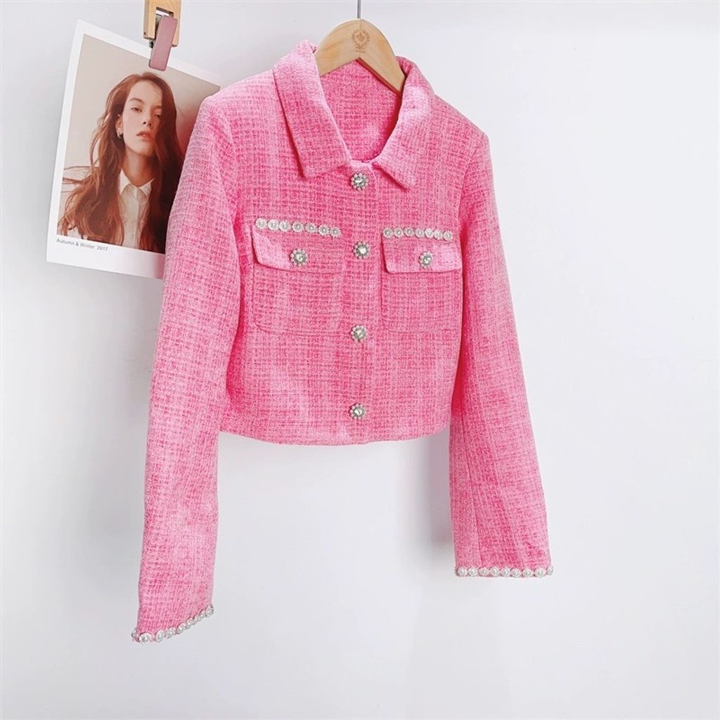 Indie Designs Crystal-embellished Cropped Tweed Jacket