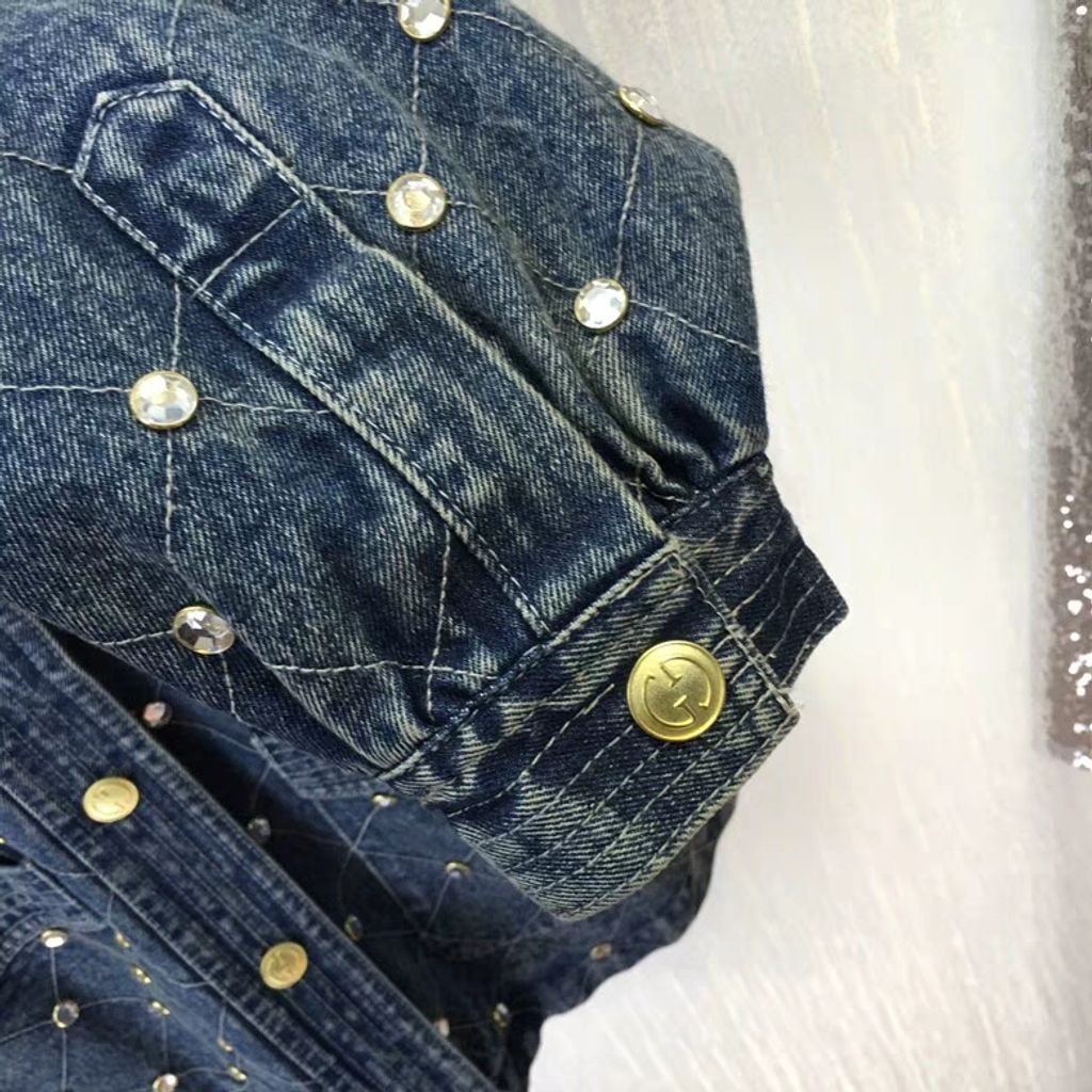 Indie Designs Crystal Quilted Marble Denim Jacket