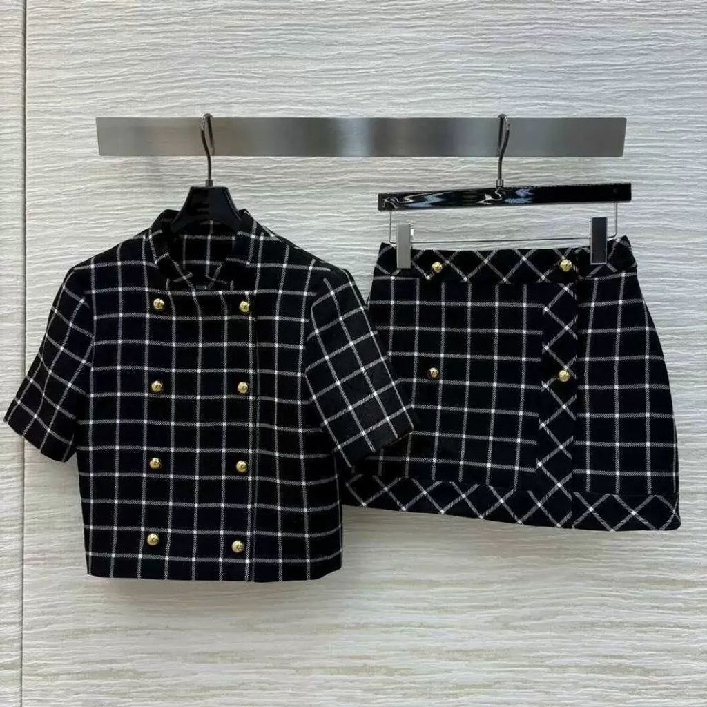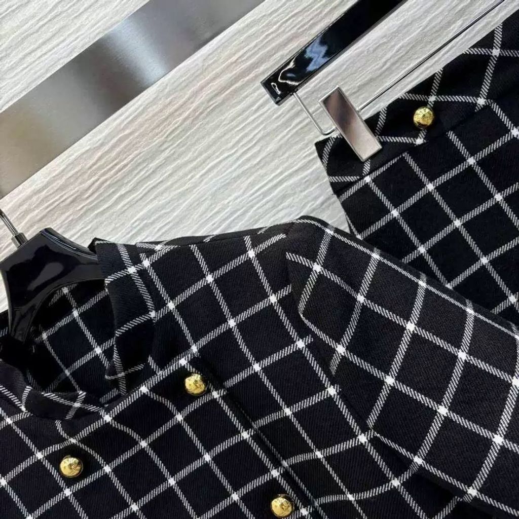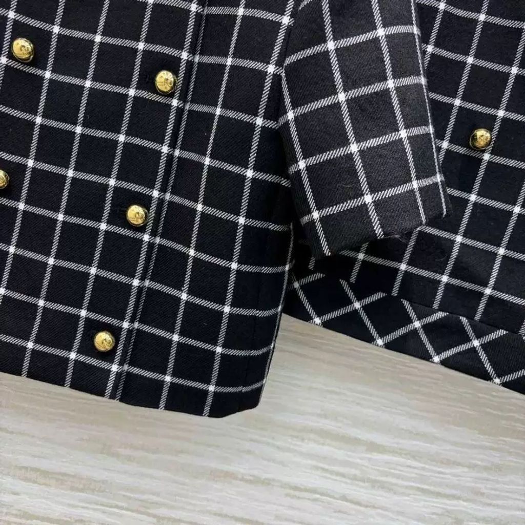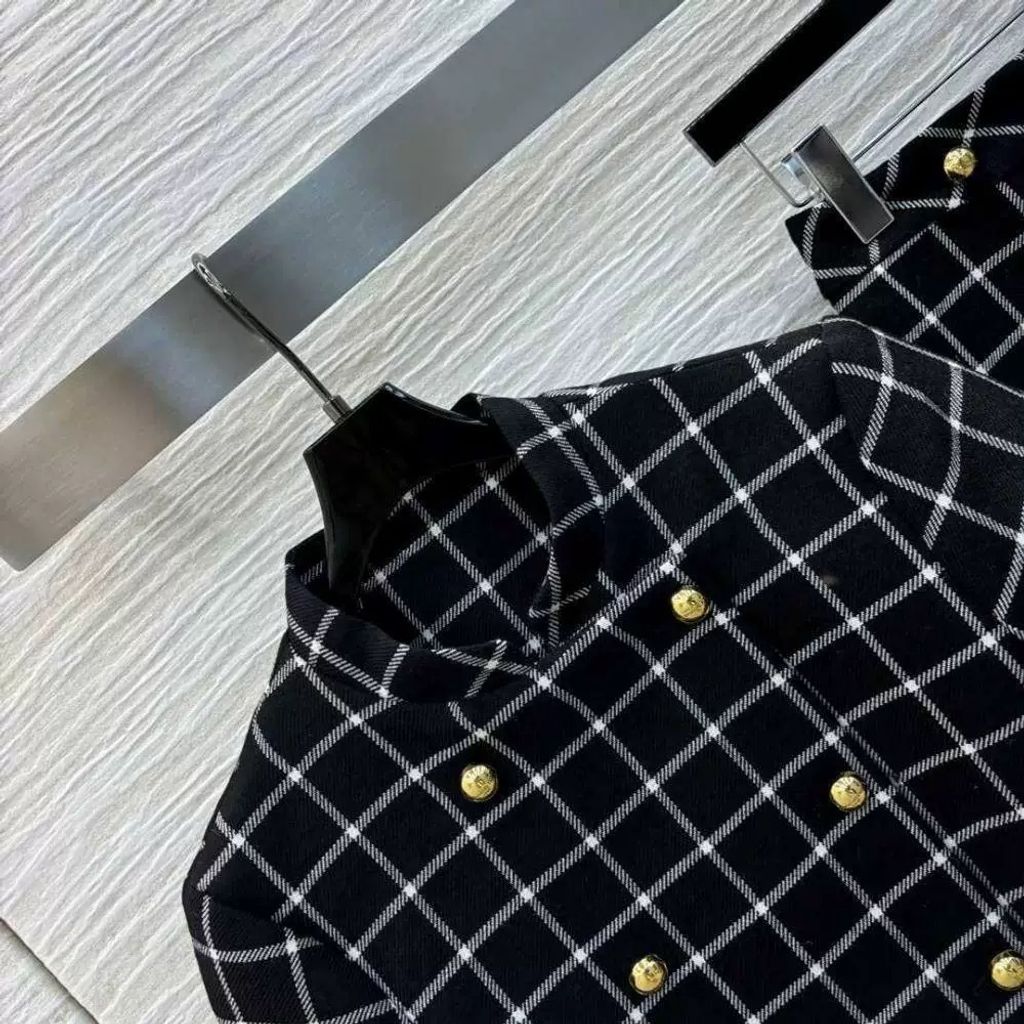 Indie Designs Double-Breasted Double-Sided Check Virgin Wool Jacket