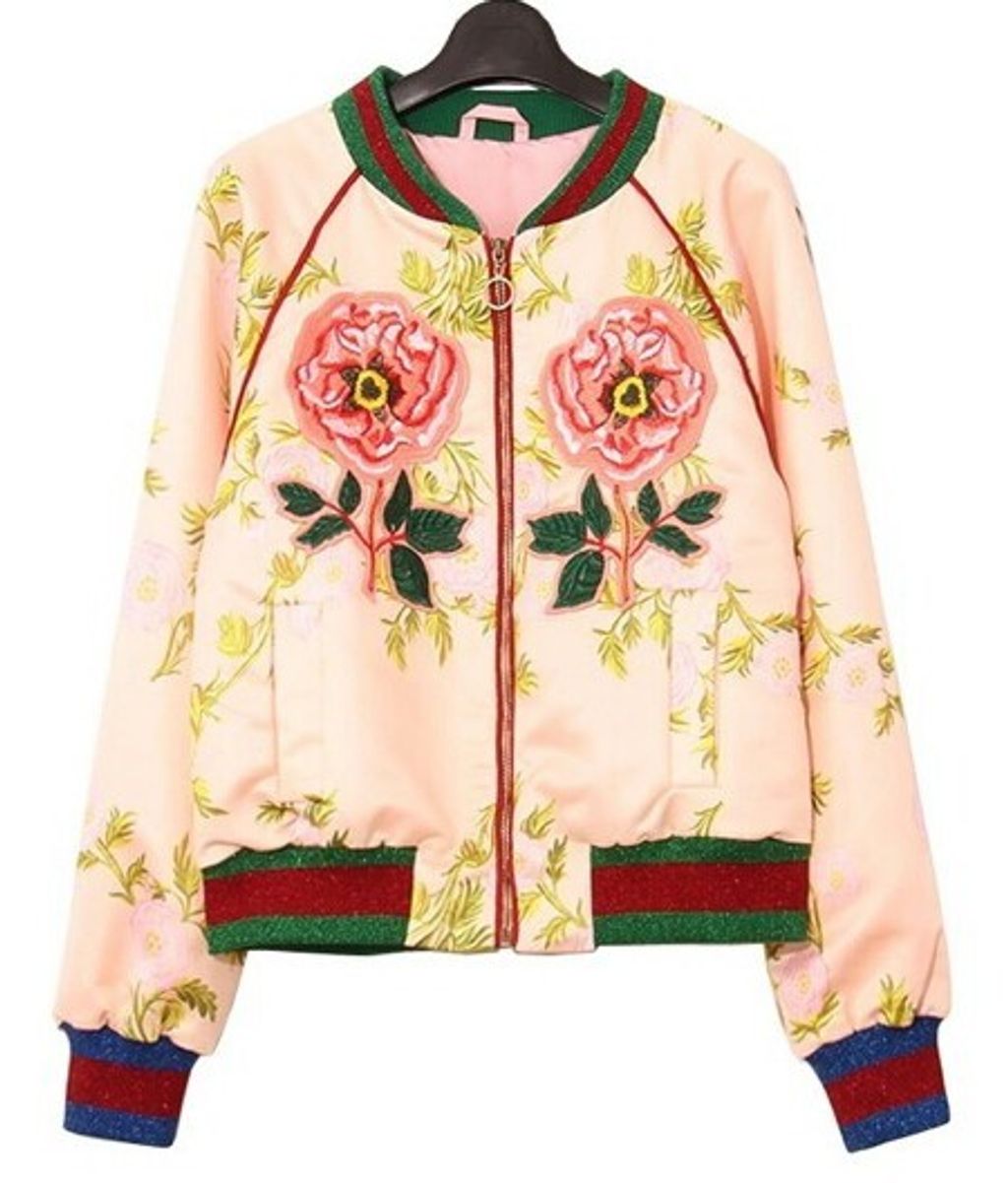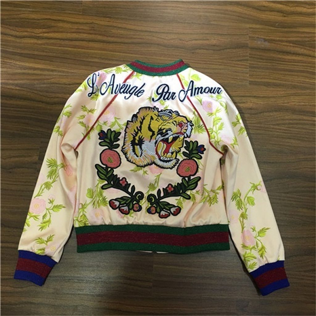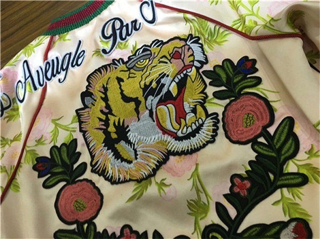 Indie Designs Floral & Tiger Embroidered Bomber Jacket