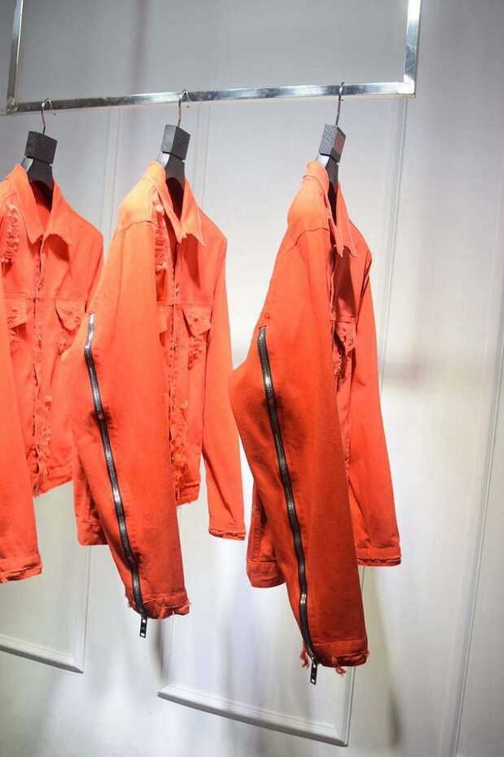 Indie Designs Golden Zipper Sleeve Orange Denim Jacket