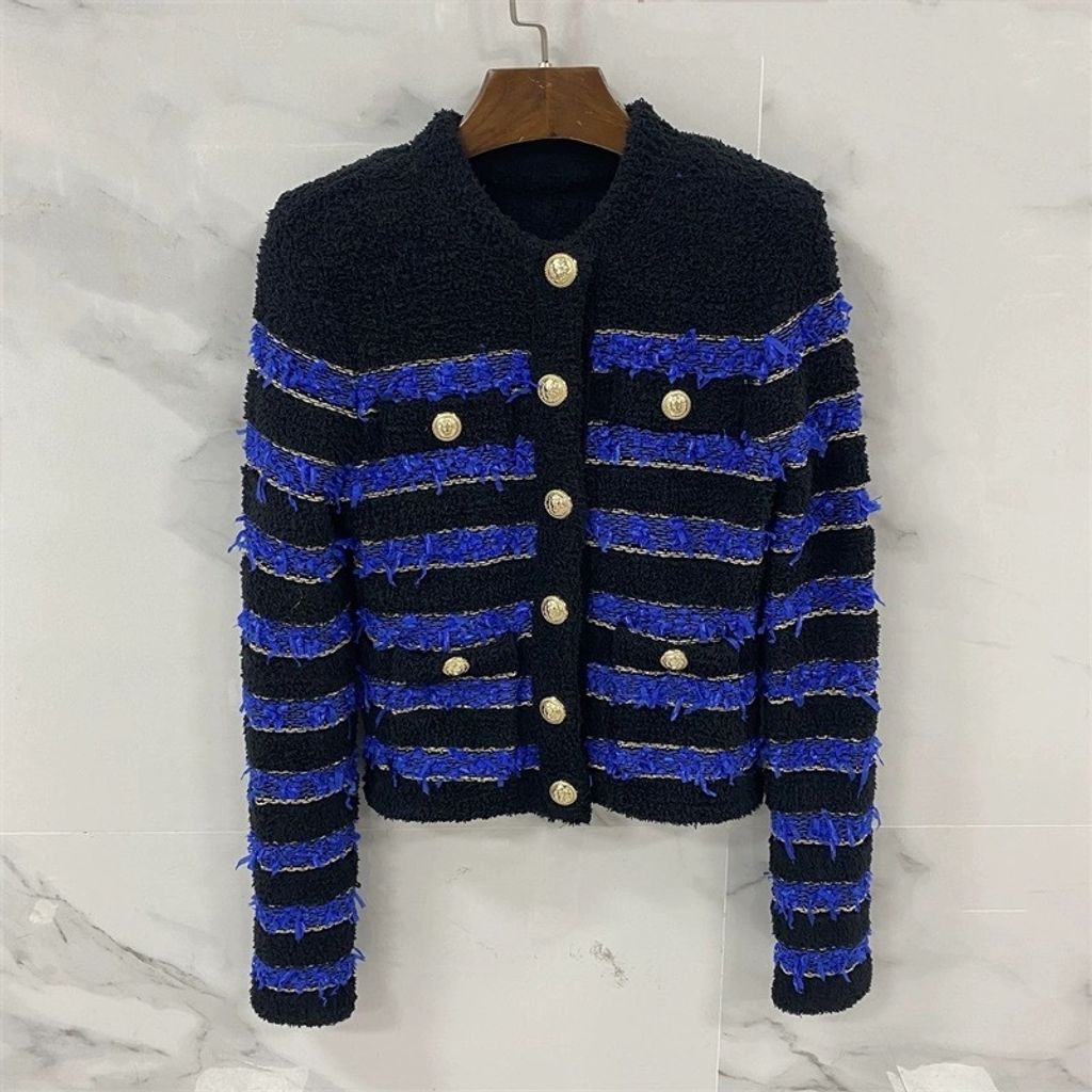 Indie Designs Horiizontal-stripe Tweed Jacket