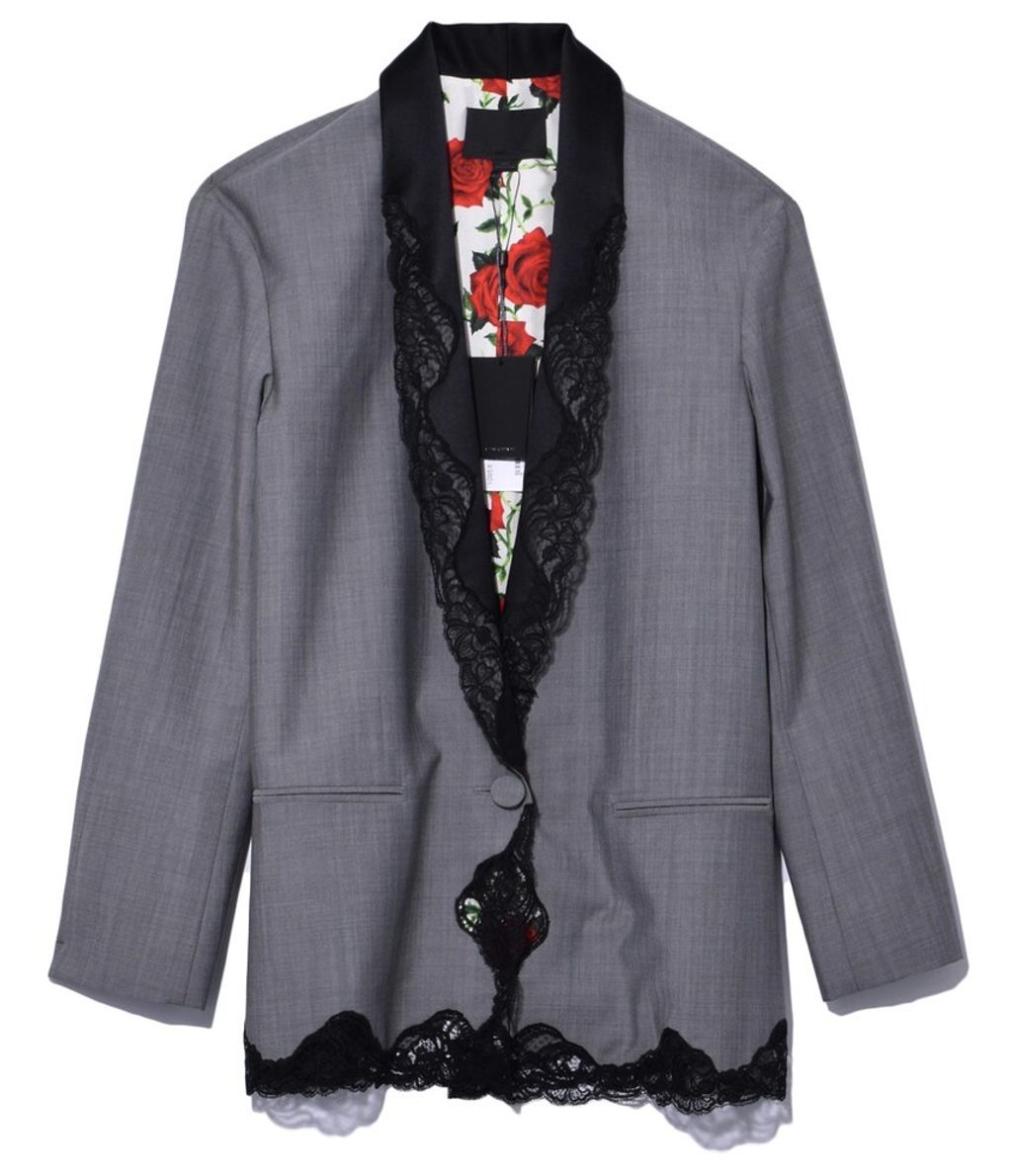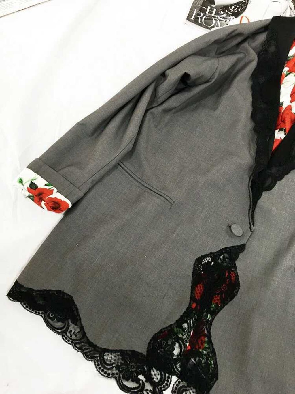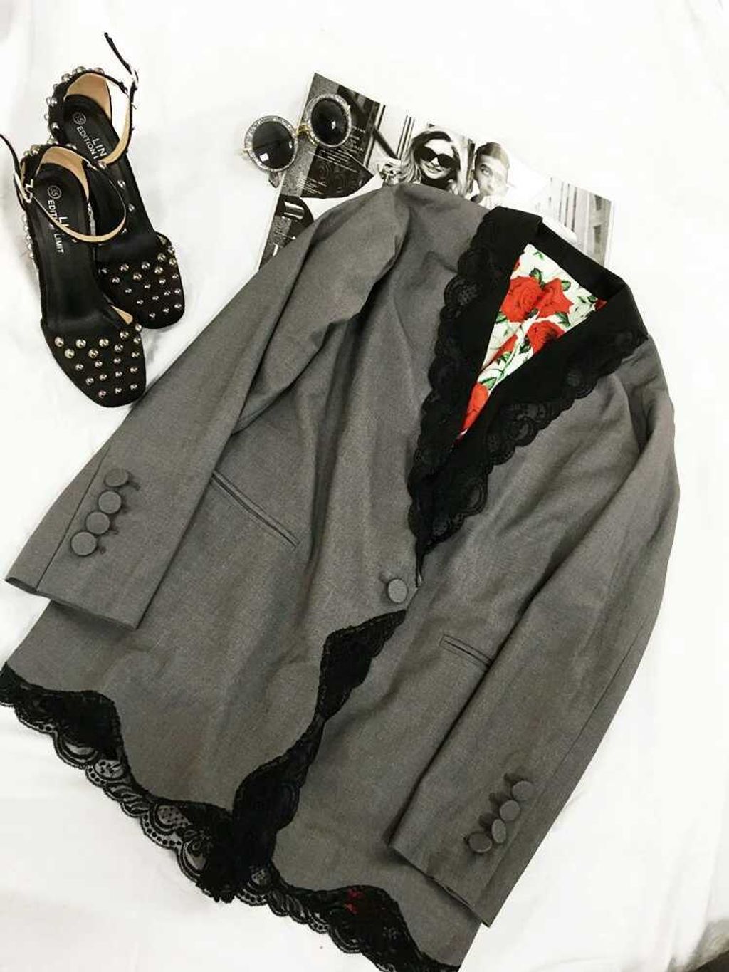 Indie Designs Lace-Trim Single-Breasted Shawl-Collar Blazer