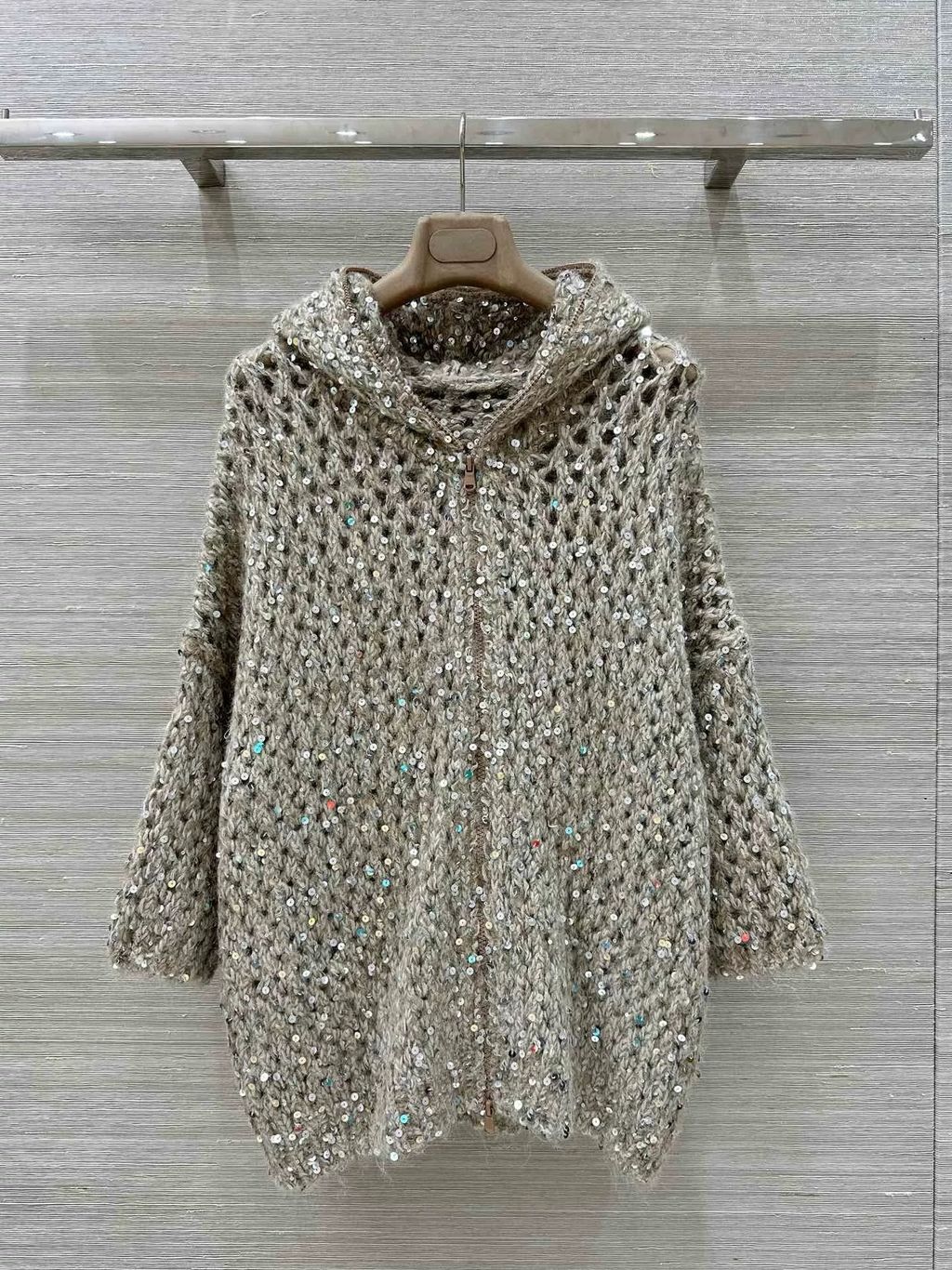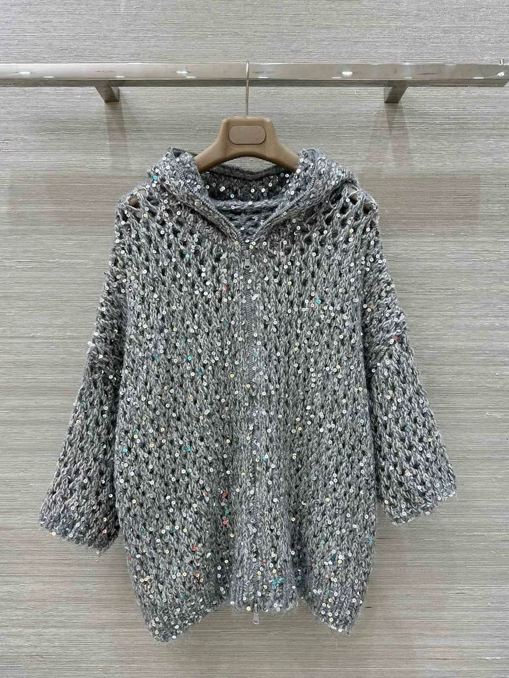 Indie Designs Mesh Oversized Embellished Shiny Sequins Cardigan