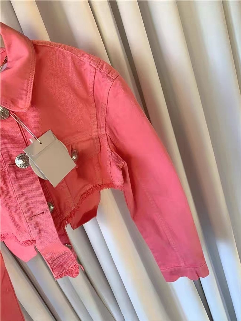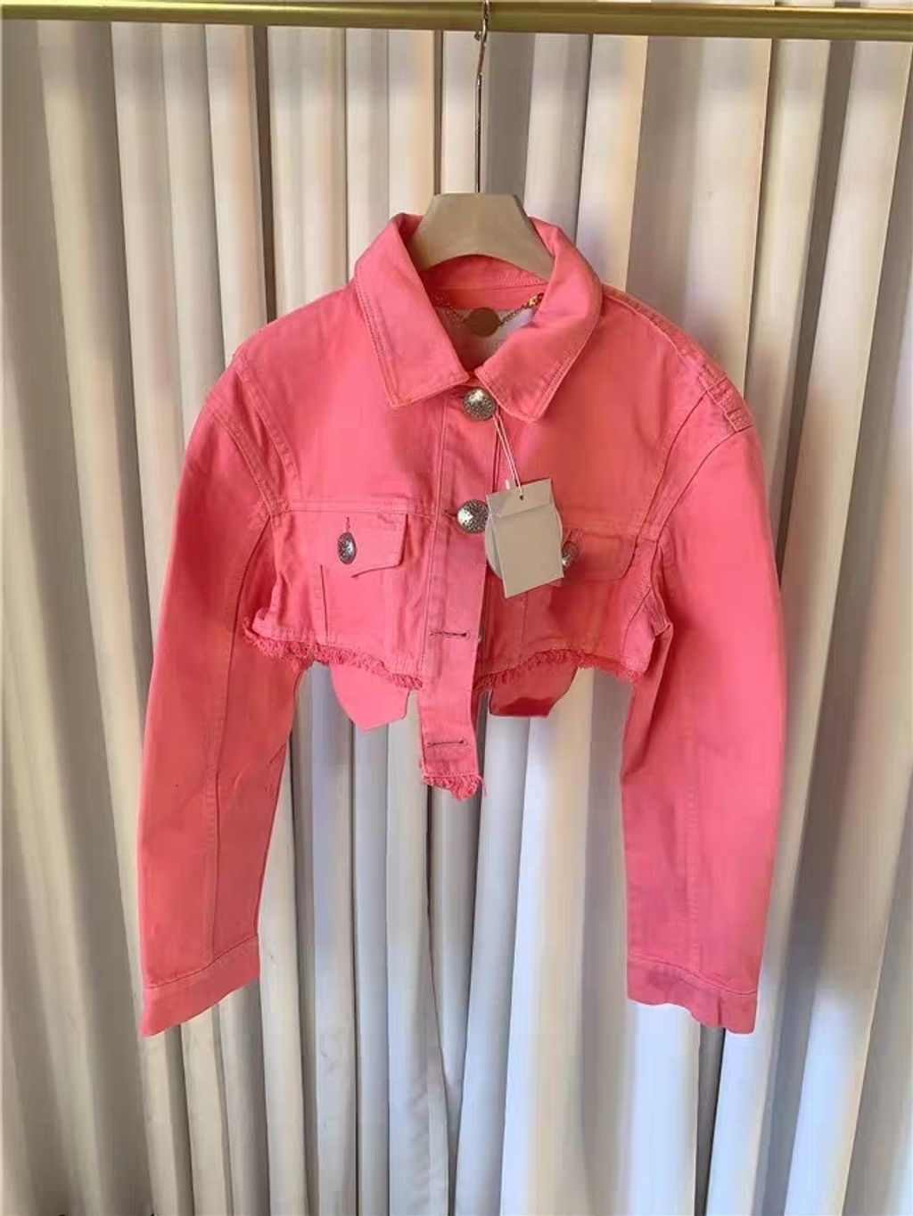 Indie Designs Pink Cropped Denim Jacket