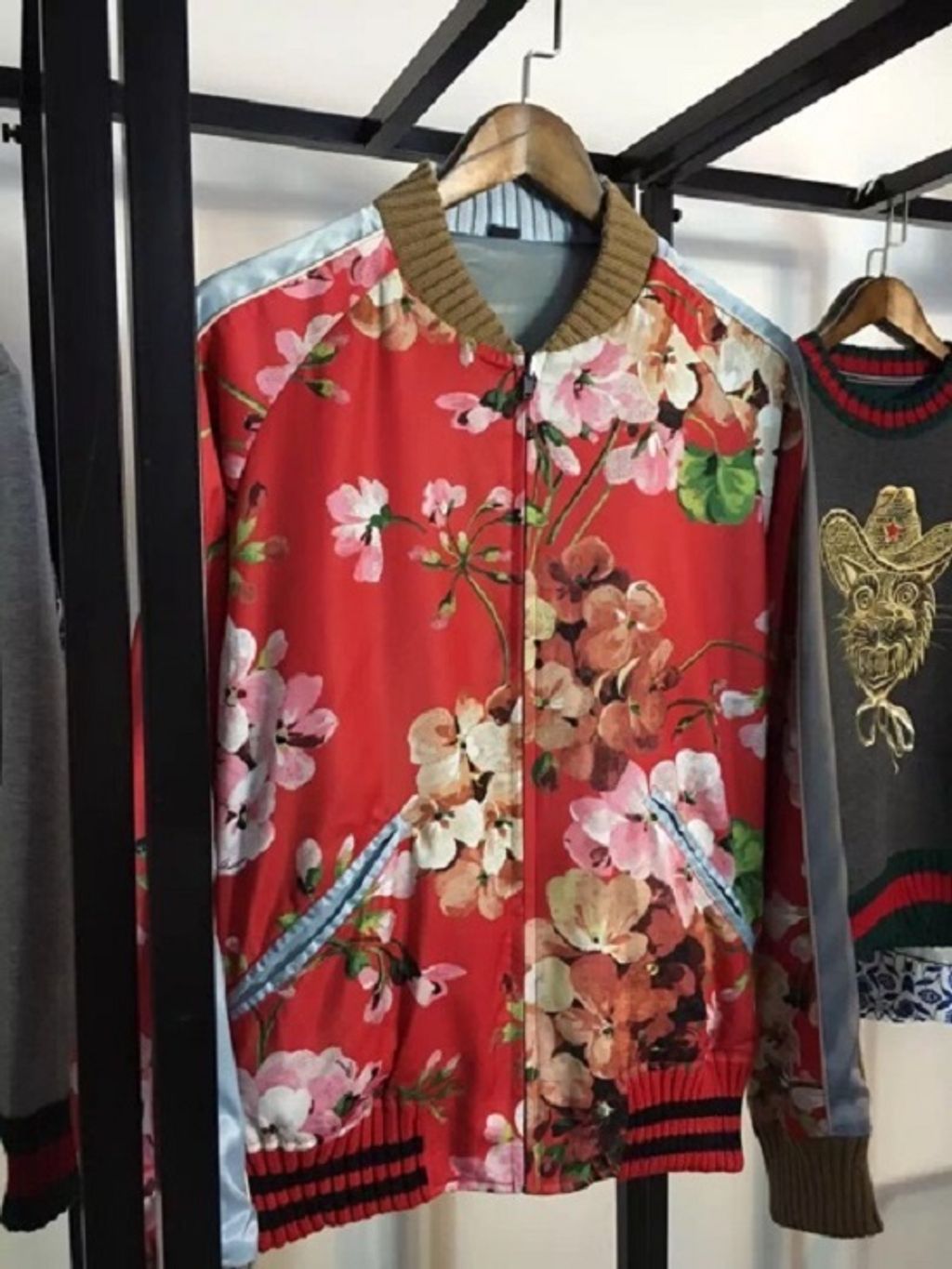 Indie Designs Reversible Geranium-Print Silk-Twill Bomber Jacket
