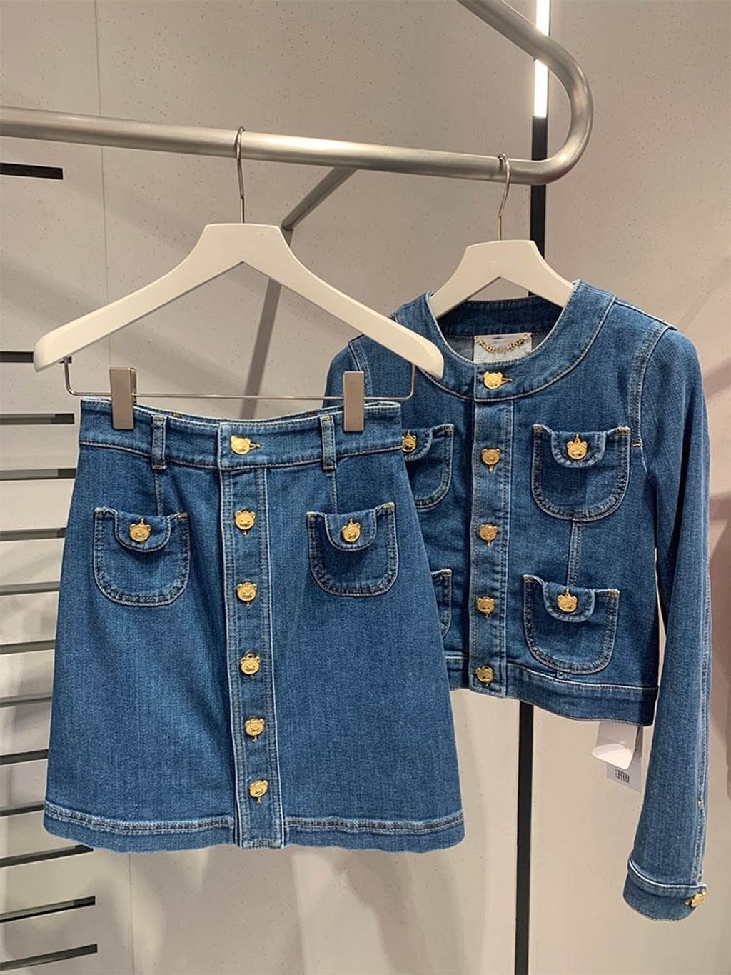 Indie Designs Toy-bear Shaped Button Denim Jacket