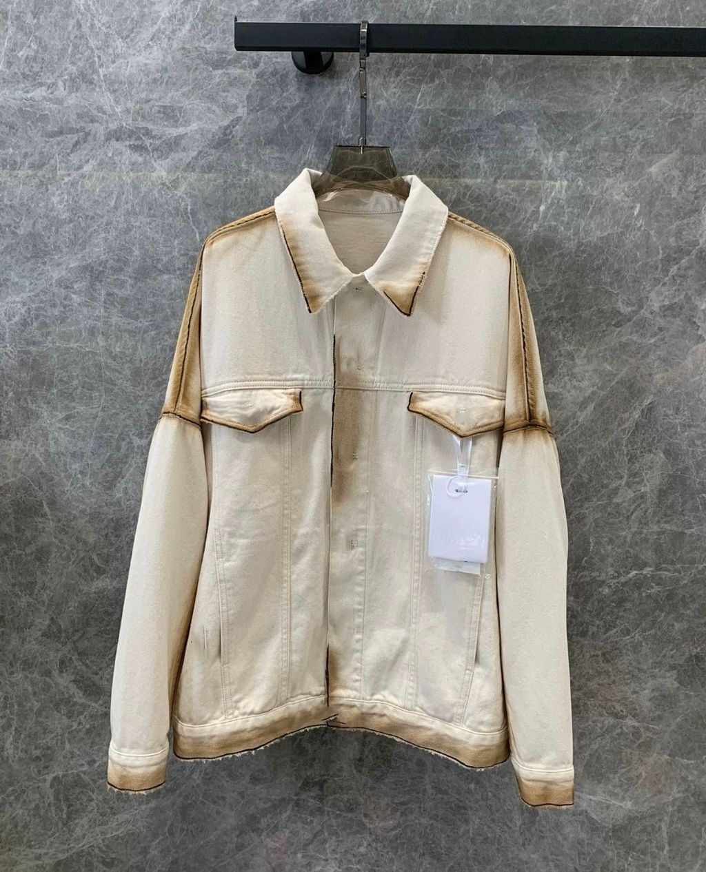 Indie Designs White Burned-Effect Cotton Denim Jacket