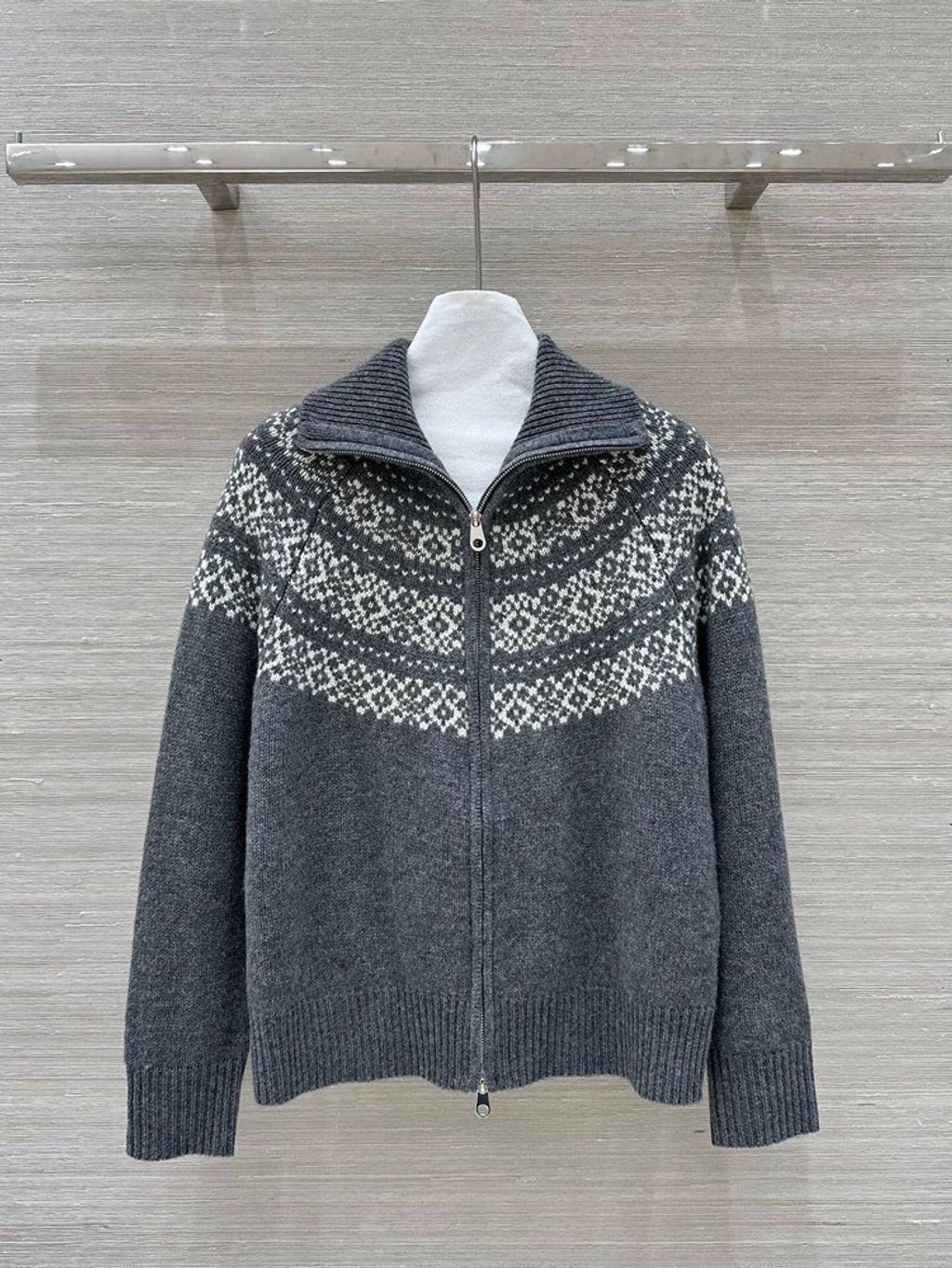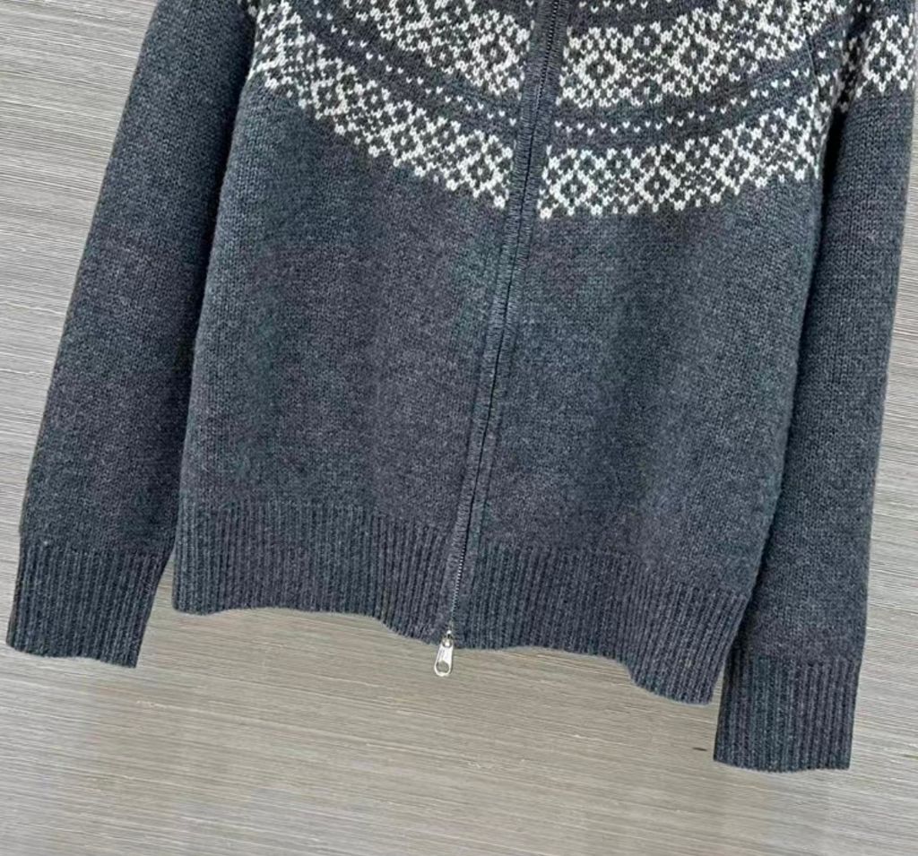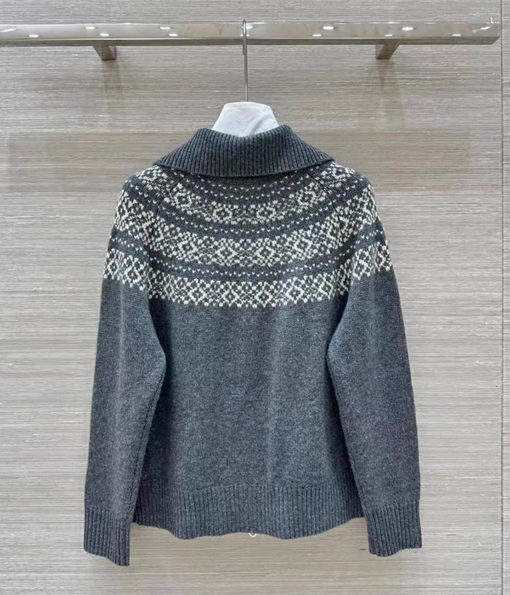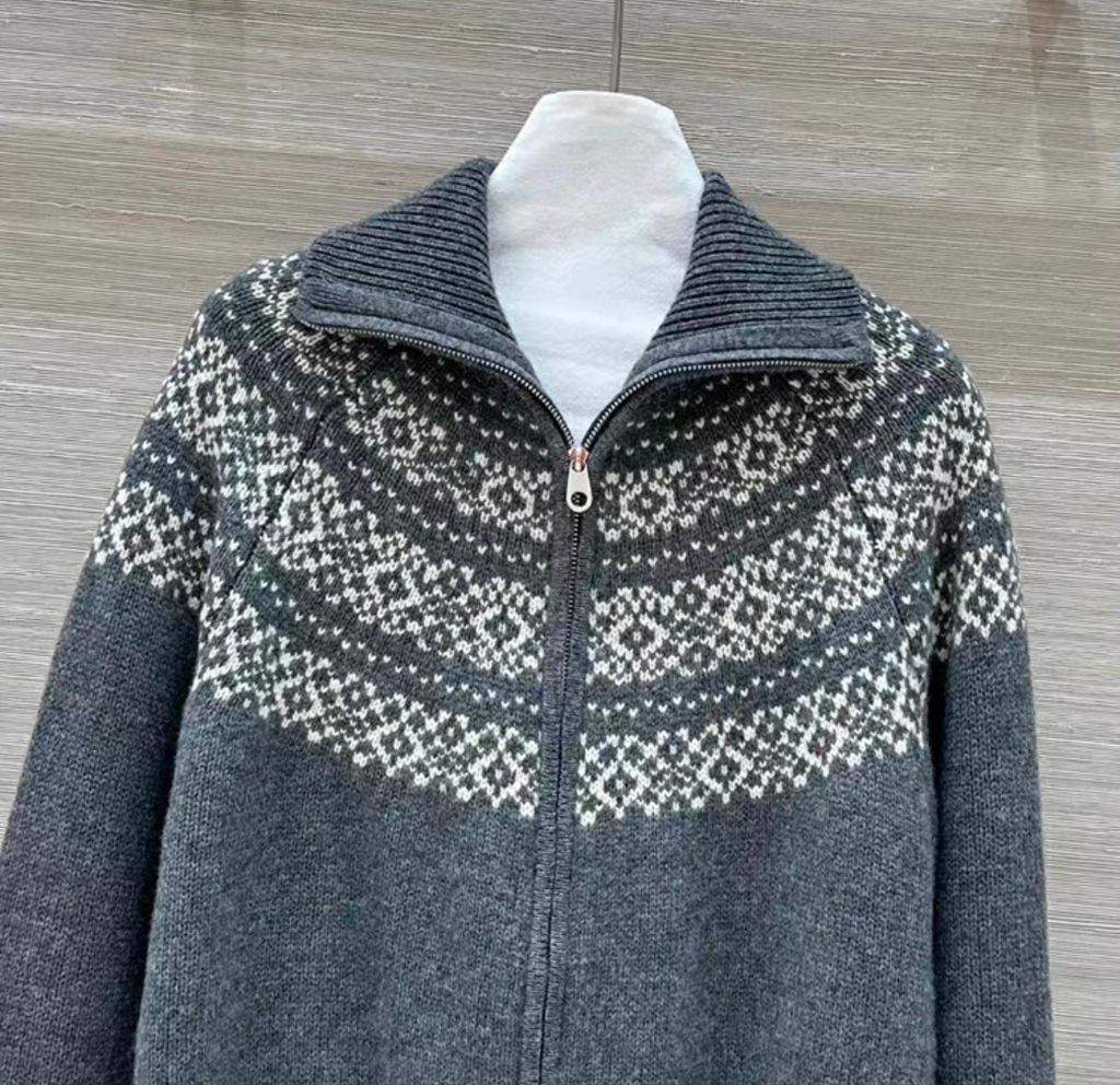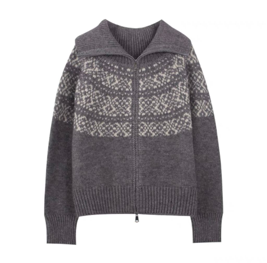 Indie Designs Double-Zip Fair Isle Jacquard Knit Cardigan