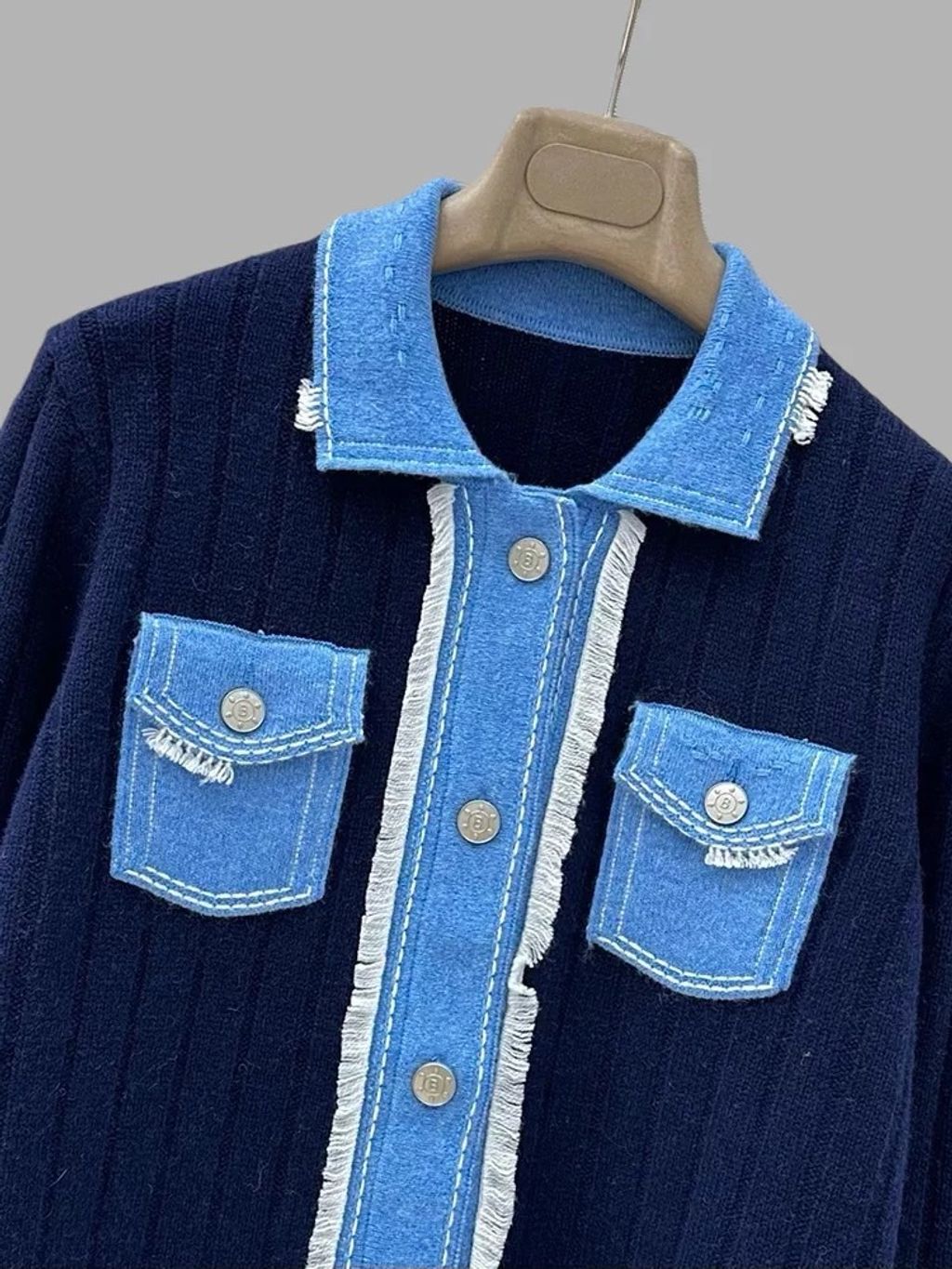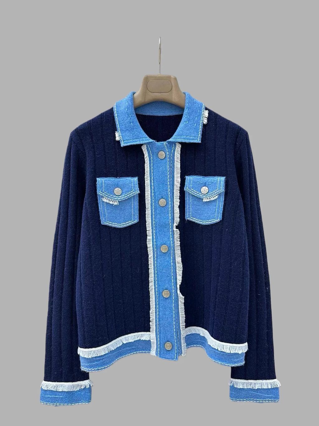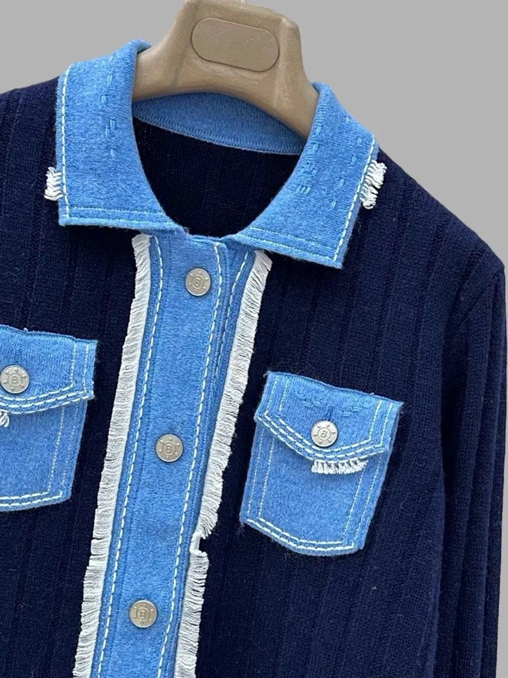 Indie Designs Ribbed-knit Denim-effect Jacket